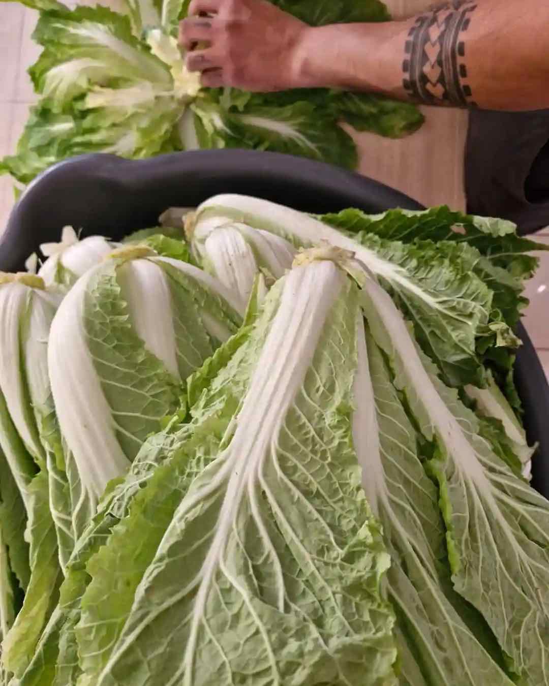 El kimchi es uno de los fermento coreanos por excelencia y se convierte en un excelente acompañante de las comidas. Se realiza con repollo akusai al cual se lo condimenta con gochugaru (ají molido sin semillas), manzana verde, cebolla de verdeo, ajo, jengibre, salsa de pescado y picante.