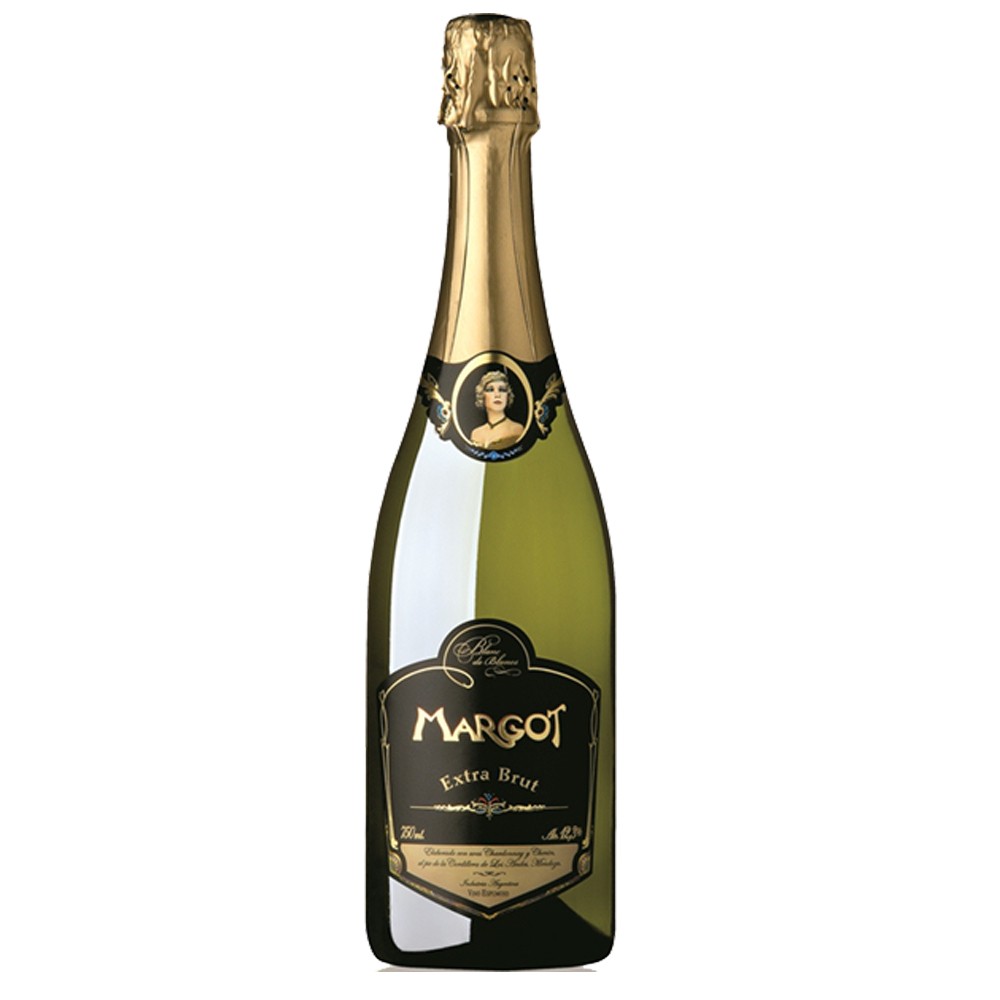 [highlight color=#df0074] Margot Blanc de Blancs Extra Brut [/highlight] Espumante elaborado por Bodega Margot, 100% Chardonnay, con uvas provenientes de Tupungato. Es un espumante elegante, de color dorado con reflejos verdosos con burbujas pequeñas y delicadas. Con aromas intenso a frutas tropicales y cítricos, con notas a levadura. En boca es untuoso, de muy buena estructura, con un final frutado. Con un precio en vinoteca de $160 aproximadamente.