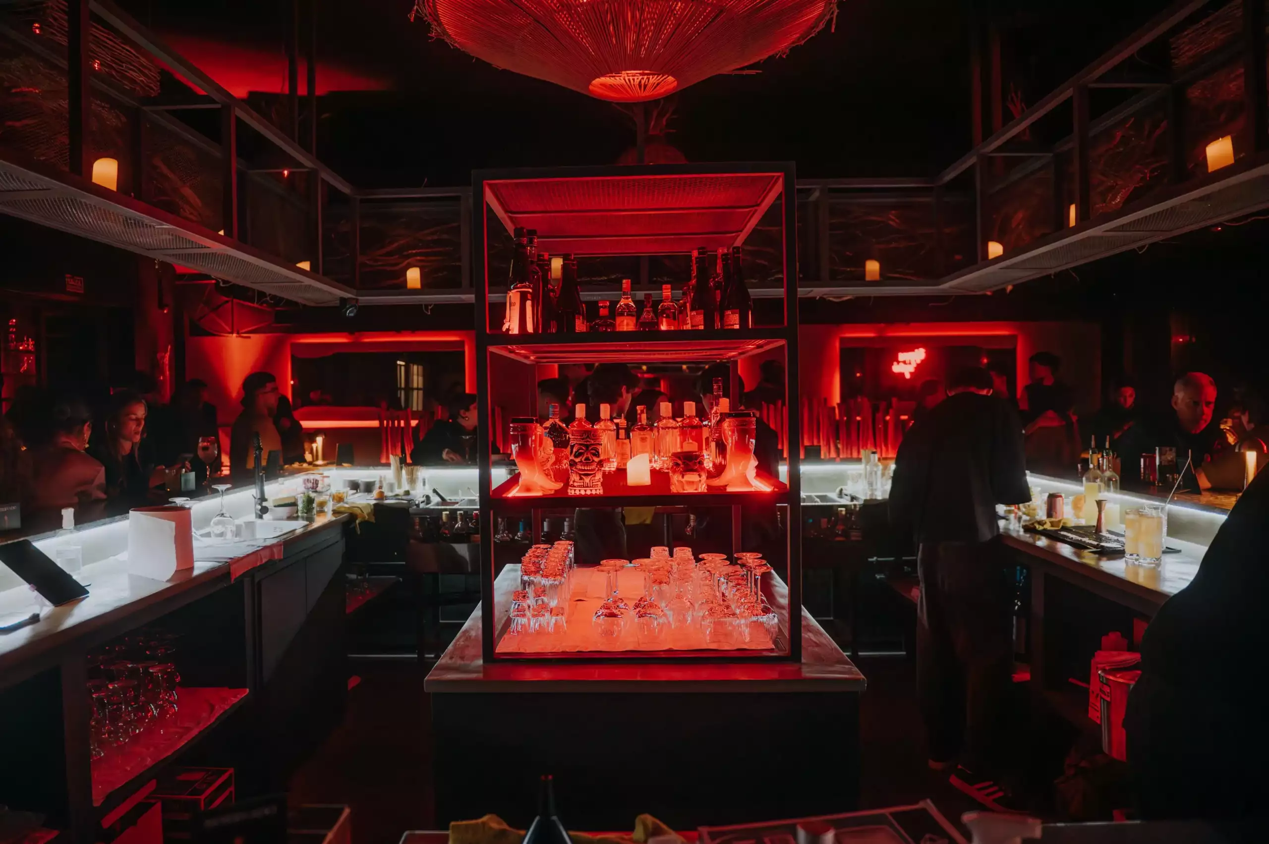 Flores es un espacio cálido y elegante, con mocktails, cócteles clásicos, vinos seleccionados, cervezas y una musicalización propia que define su atmósfera sofisticada. Allí también se realizan degustaciones de vinos que celebran el terroir mendocino. Fuego, en cambio, es un bar secreto que despliega coctelería de autor, DJ en vivo y una identidad misteriosa que convierte cada visita en un ritual nocturno.