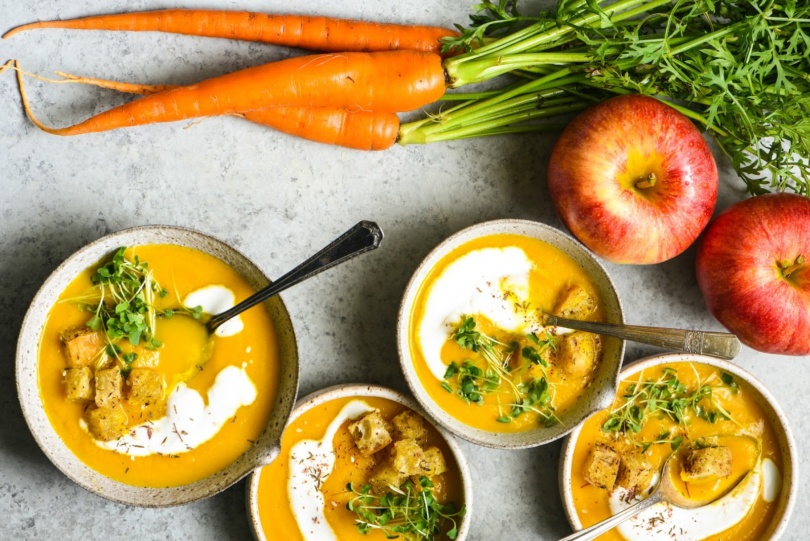 Crema de zanahorias y manzanas al curry: «Esta sopa es para los amantes de los sabores orientales. Es un must del verano porque aparte de ser refrescante aporta un montón de betacarotenos».