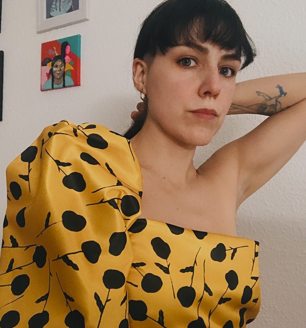 «Cuando vi su obra por primera vez sentí una furia de color e inmediatamente la imaginé estampada en un textil. Había trabajado anteriormente con imágenes de posters, fotografías y pintura renacentista. En este caso fue muy gratificante trabajar con una obra tan palpable y el consentimiento del artista para desarmar su obra y transformarla en prendas. Esta colección inspirada en Seguy, tiene colores rosas, blancos, amarillos y azules que se fusionan en una paleta eléctrica», describe Marianela sobre su propuesta de diseño.