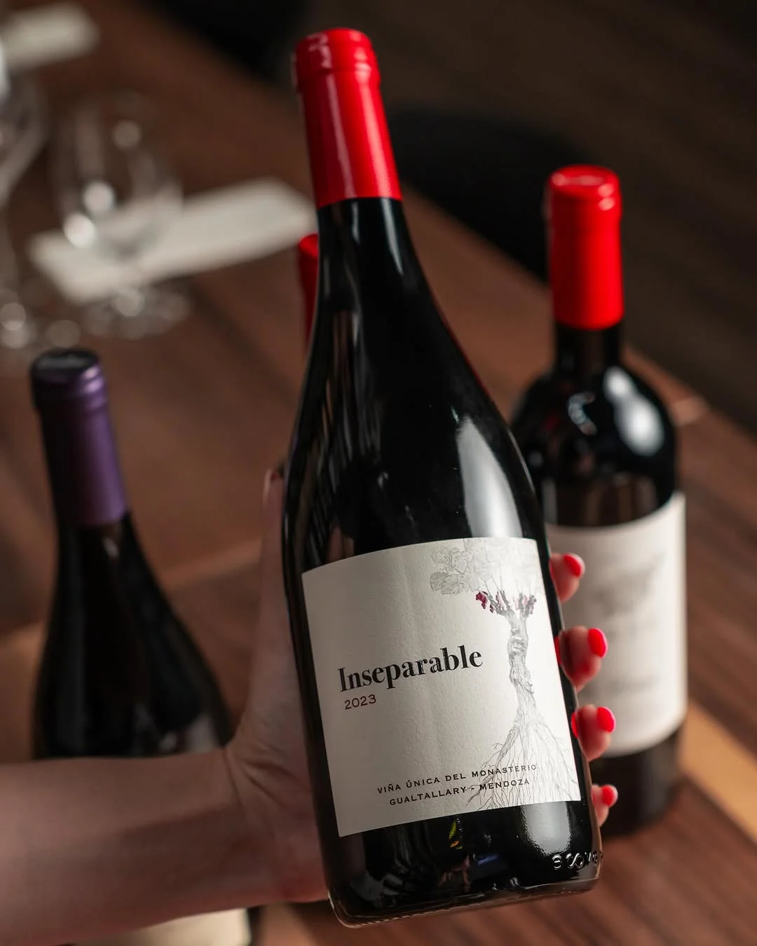 Inseparable by Per Se proviene del corazón del viñedo original de Monasterio, Gualtallary; es un espaldero tradicional en un terreno arenoso, calcáreo y con un nivel de producción bajo. Este 100% Malbec recomendado por la Head Sommelier de Azafrán Restó tuvo una crianza en piletas de cemento por 12 meses, para después ser embotellado sin afinar ni filtrar. Tiene un potencial de guarda de 10 años.
