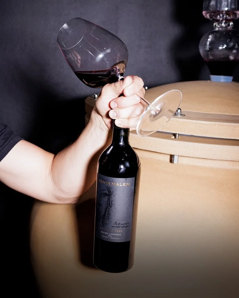 Este Malbec de Bodega Ruca Malen, se caracteriza por una fermentación maloláctica con flora nativa en ánforas de concreto, donde también cumplen su crianza durante 10 meses. Los diferentes minerales que poseen las ánforas potencian su personalidad.