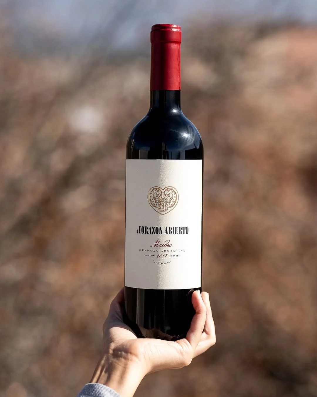 Este Malbec elaborado por A Corazón Abierto Wines, está microvinificado en barricas de roble francés y luego es criado 18 meses en barricas de roble francés de segundo uso; su rojo violáceo intenso y notas rubí son el comienzo de un viaje por los sentidos que termina en boca, con una disfrutable entrada, taninos sedosos y personalidad.