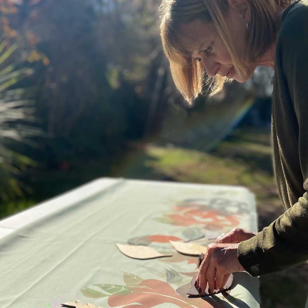 Hoy la artista realiza paños estampados y con la ayuda de hilo y aguja, renacen como objetos cotidianos: manteles, fundas de almohadones, caminos de mesa, tapizados de sillas, barbijos, necessaires «y todo lo que se pueda crear con una tela impresa».