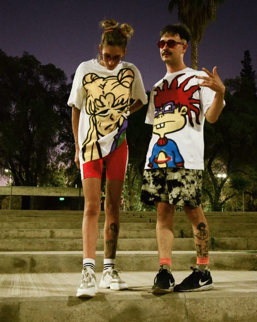 Hey Arnold, Rugrats, Doug y Bob Esponja son solo algunos de los amigos animados que él dibuja con aerosol en las prendas que hace por pedido. Contacto Instagram