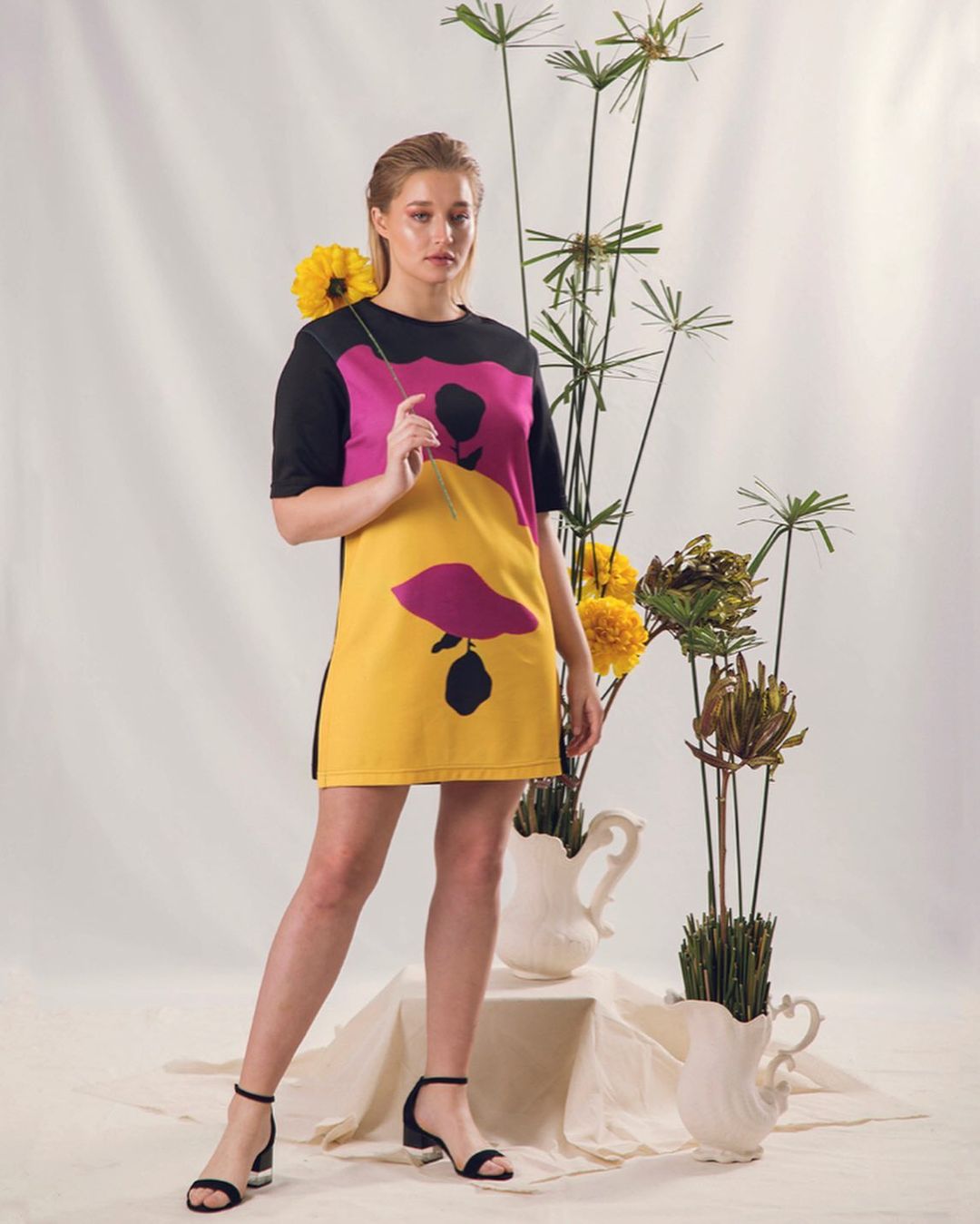 Se trata de una cápsula atemporal de prendas que toma una serie pictórica de Seguy realizada en 2018. Es ropa que no depende de una estación sino del clima y las ganas de vestirla como son los buzos, remeras, las faldas y top, los vestidos y/o túnicas.