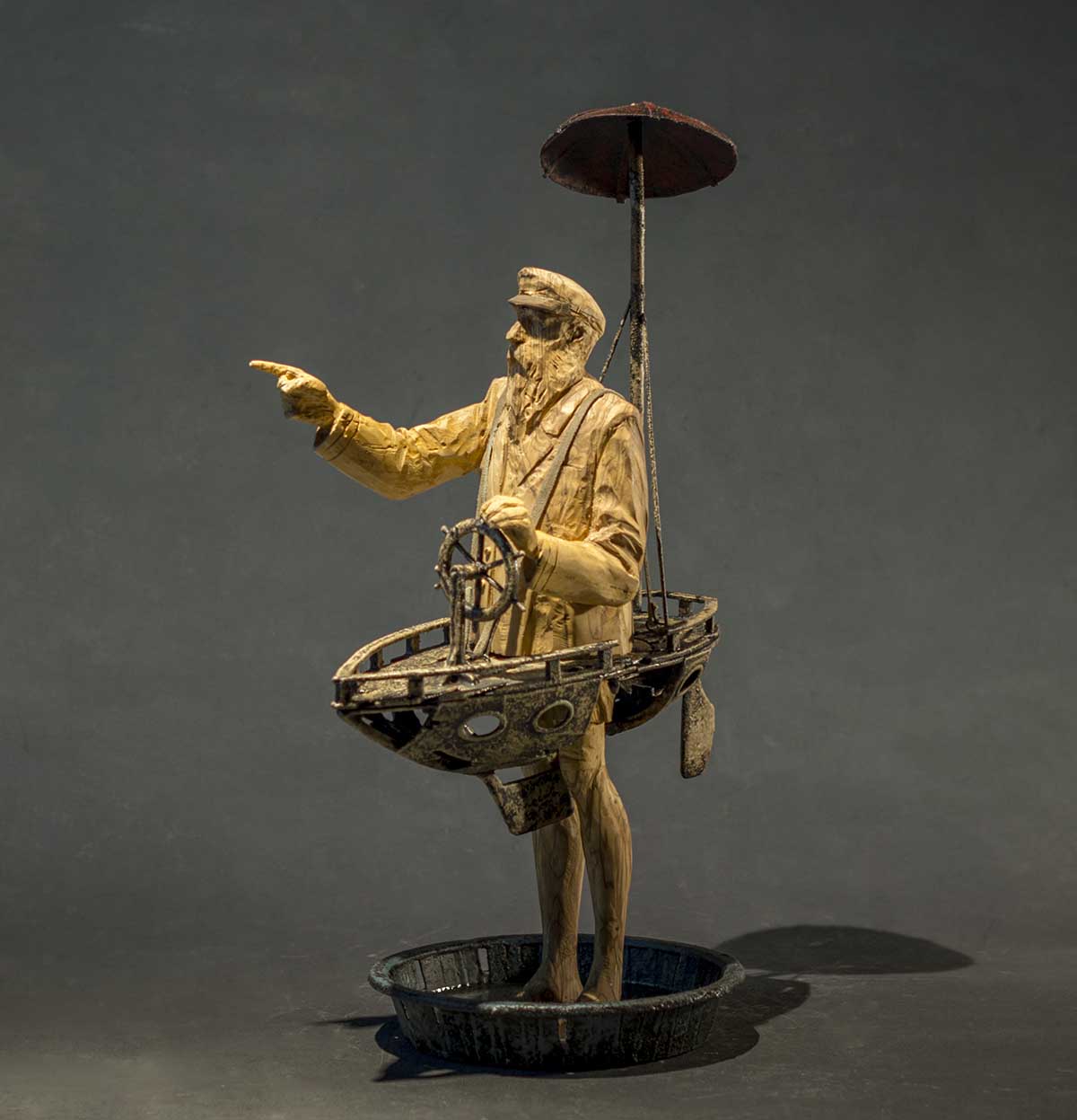 Cabalgando Mares, otra de las obras que se presentan, es una escultura que nació de la ilustración de la artista platense Nadia Romero Marchesini. Fernando Rosas que culminó de darle vida a esta pequeña soñadora, una niña que juega a conquistar ciudades escondidas entre océanos con su flamante barquito de madera.