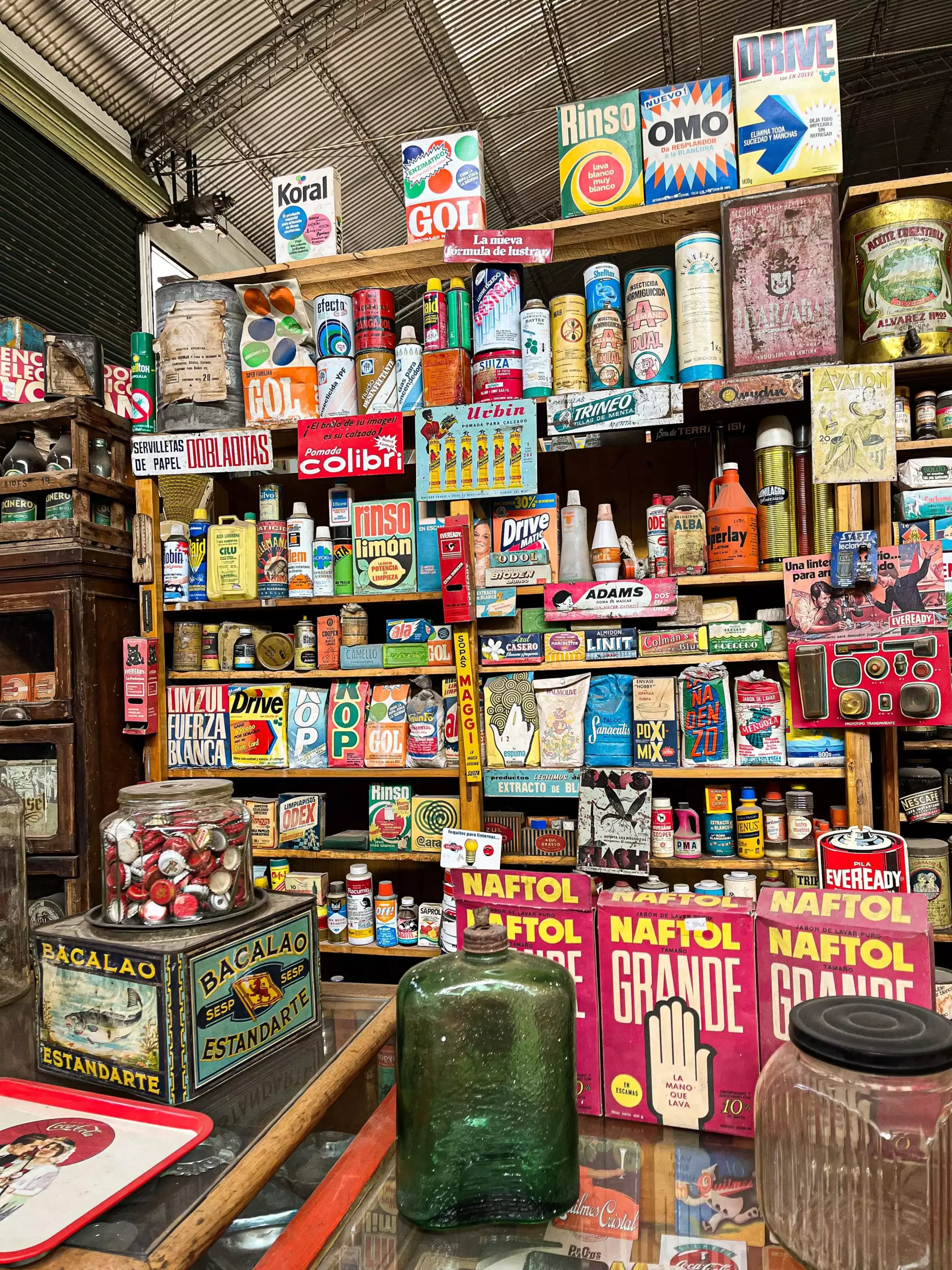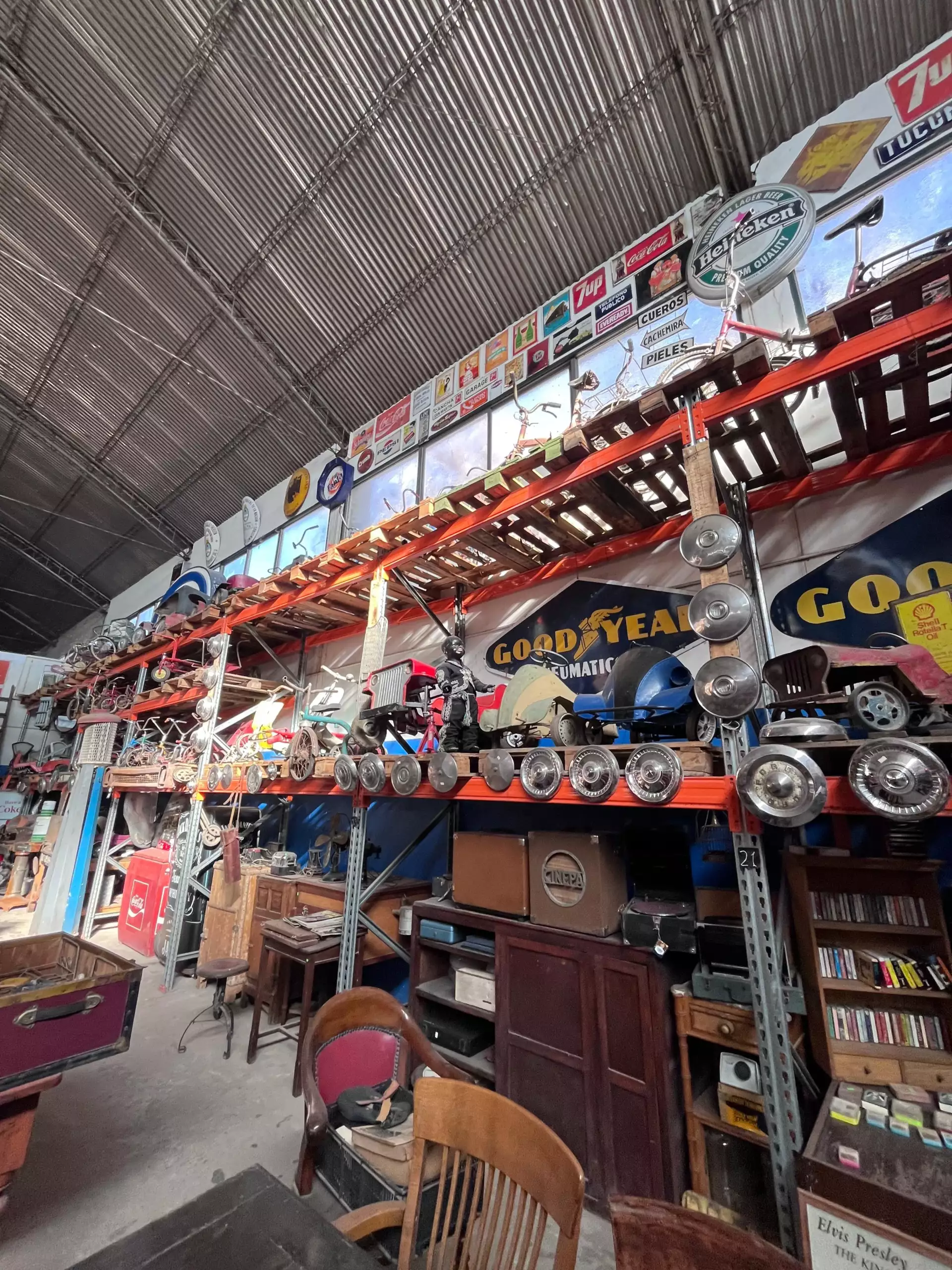 Si bien existen otras grandes colecciones en Argentina, la diferencia de Tesoros del Pasado es que está organizada y abierta al público. «Es como San Telmo, pero todo en un solo lugar», explica Hernán. «Está todo dispuesto por rubros: hay una farmacia, una pulpería, un bar antiguo, juguetes, motos…».