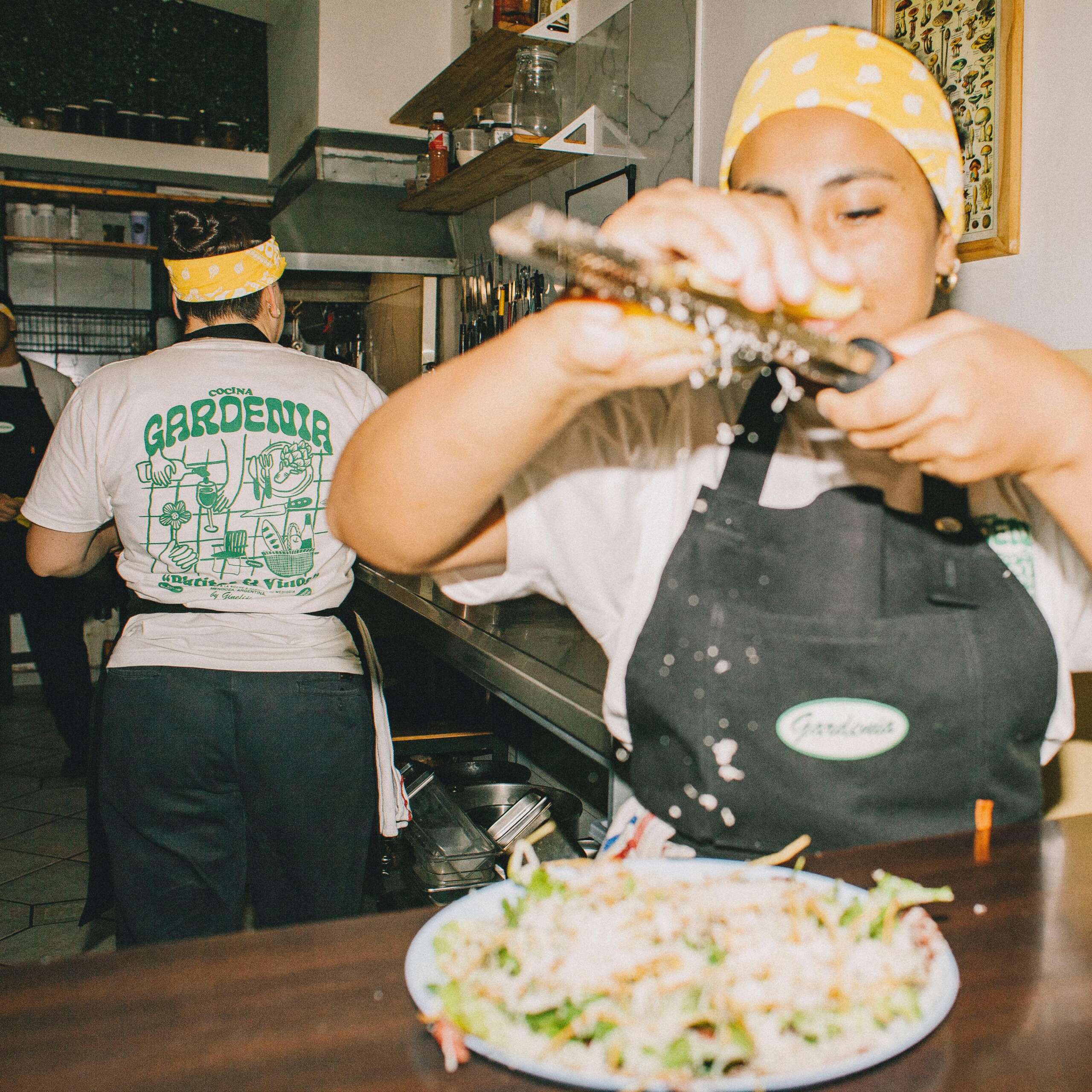 El lugar de platos típicos de diferentes partes del mundo, invenciones propias y muchas opciones veggie en formato para compartir del que somos fan se unió de manera fugaz y orgánica con la marca de ropa Union Work Goods, dedicada a vestir a personales gastronómicos (en su mayoría) con toda la onda del planeta.