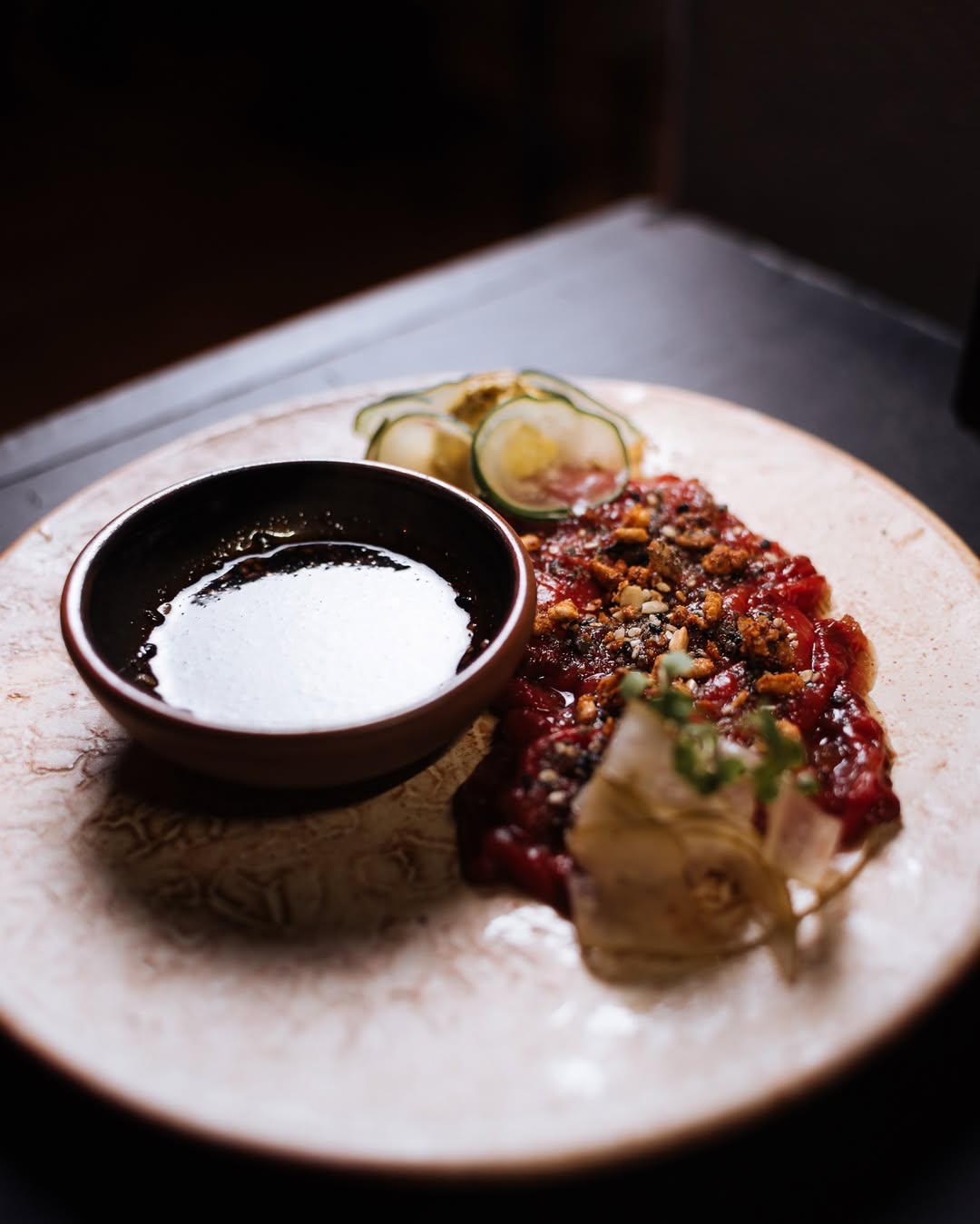 Al frente de la cocina está el chef Gastón Trama, con 16 años de trayectoria y una mirada amplia sobre lo que puede ser un plato. «En Ruda, no nos ata un concepto ni un formato. En el menú podés encontrarte con una receta muy trabajada, con técnicas de fine dining, o con un clásico como un escabeche de conejo. Nos gusta probar acidez, picor, combinaciones que no te imaginas», resume.