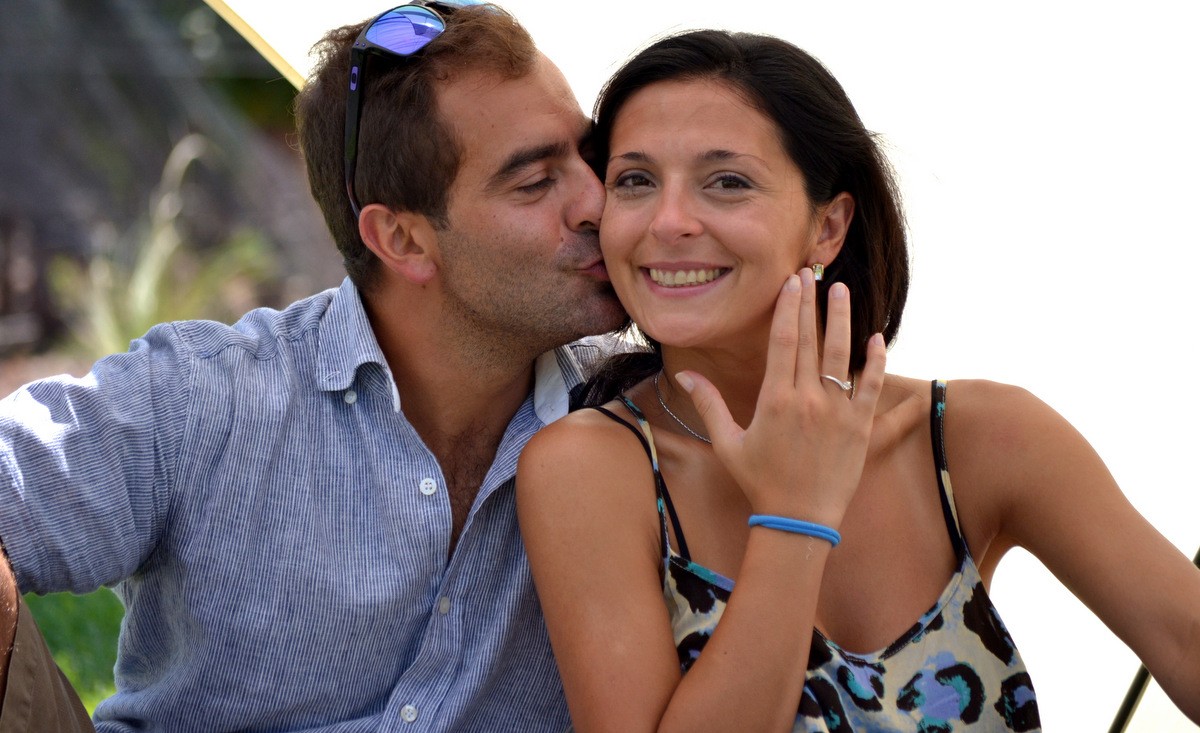 En medio de esta agradable jornada, los ganadores del concurso de INMENDOZA pudieron asistir a una anécdota simpática. Dos visitantes de la bodega Dominios del Plata invitaron a los presentes a un hecho muy particular para sus vidas: la pareja, integrada por Sebastián Juri y Silvina Canzonieri, sellaron su compromiso amoroso con el regalo de un anillo de parte del caballero y un beso, ante el aplauso de los presentes.