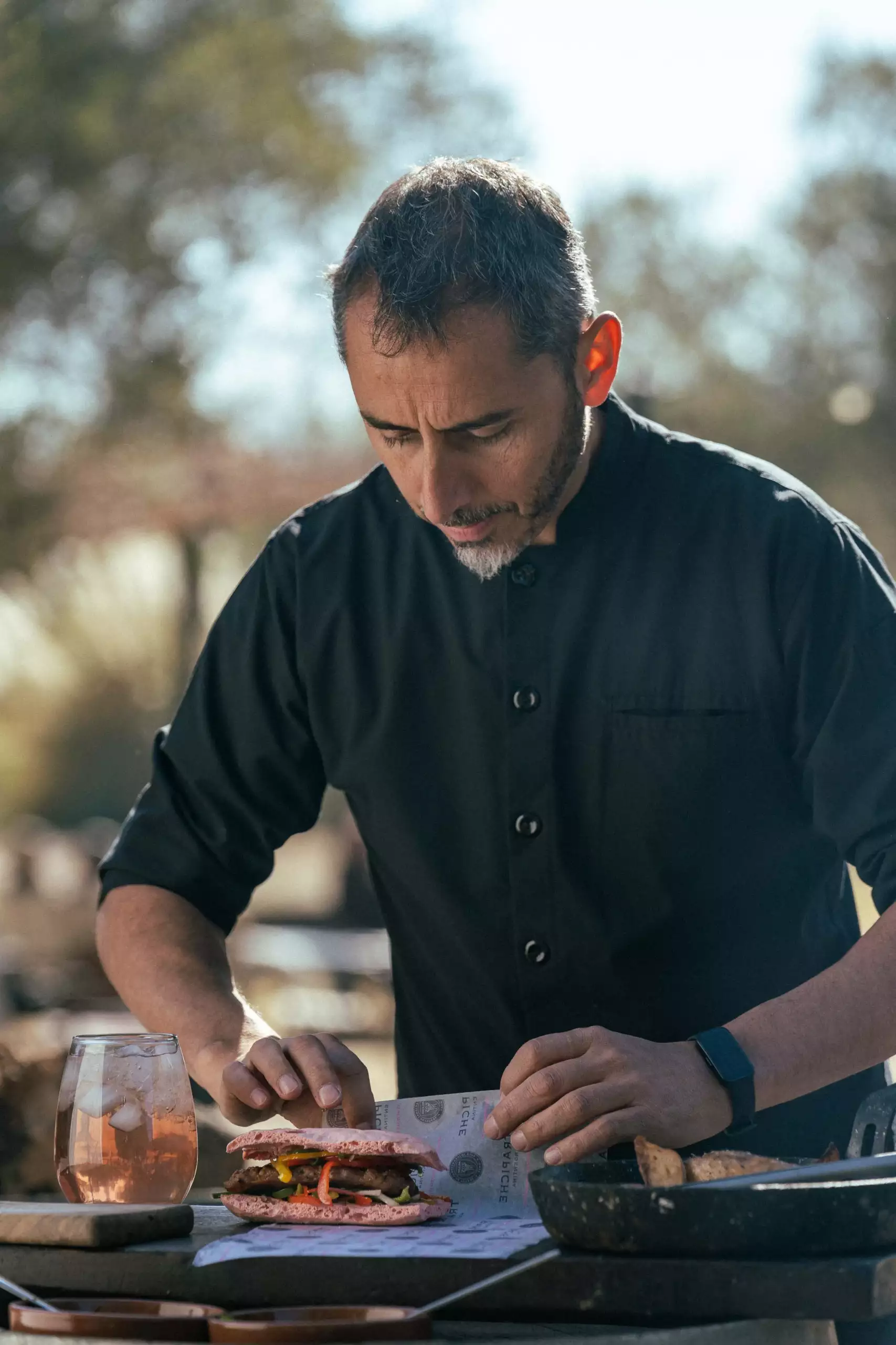 El reconocido chef Lucas Bustos es quien ideó la carta gastronómica de estilo street-food, ofreciendo una gran variedad de sándwiches con reversiones de panes coloridos y sabores regionales, ideales para acompañar con una copa de vino o un cocktail a base de dicha bebida.