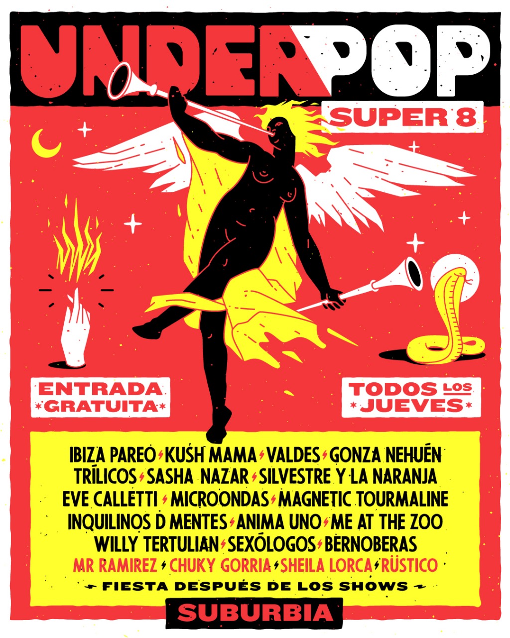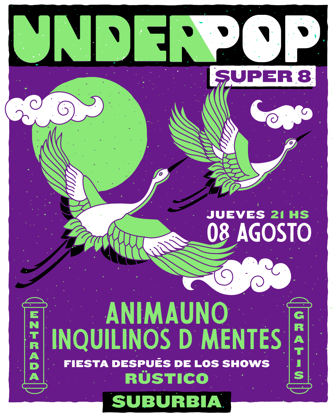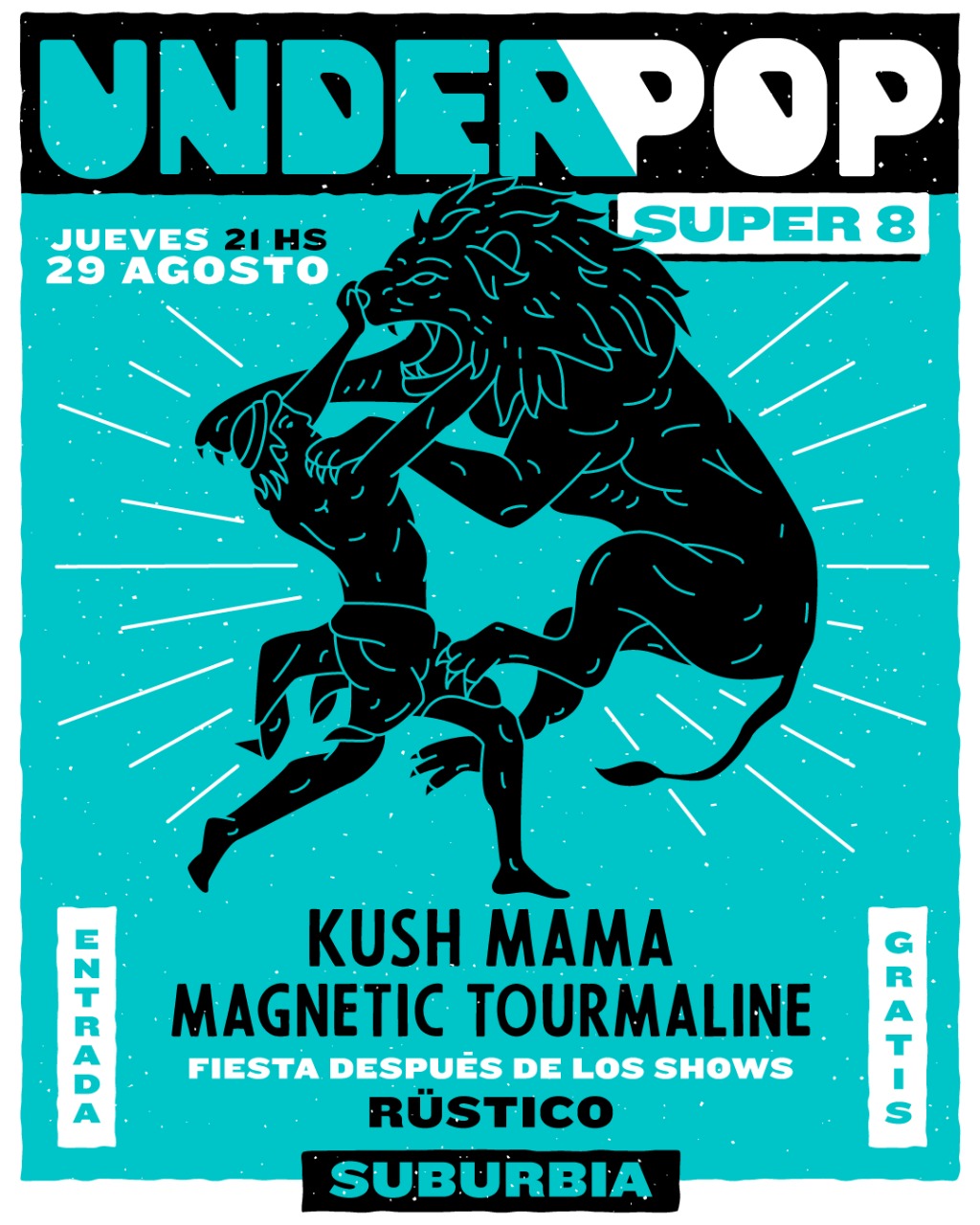 8 fechas. 16 bandas. 4 Djs. 1 lugar. 1 Productora. Eso fue Súper 8, el ciclo de bandas en vivo + Dj organizado por la productora Underpop, que se desarrolló en Suburbia Bar, los jueves de julio y agosto. Esta semana se vivió la última edición con Kush Mama, Magnetic Tourmaline y Rüstico en las bandejas.