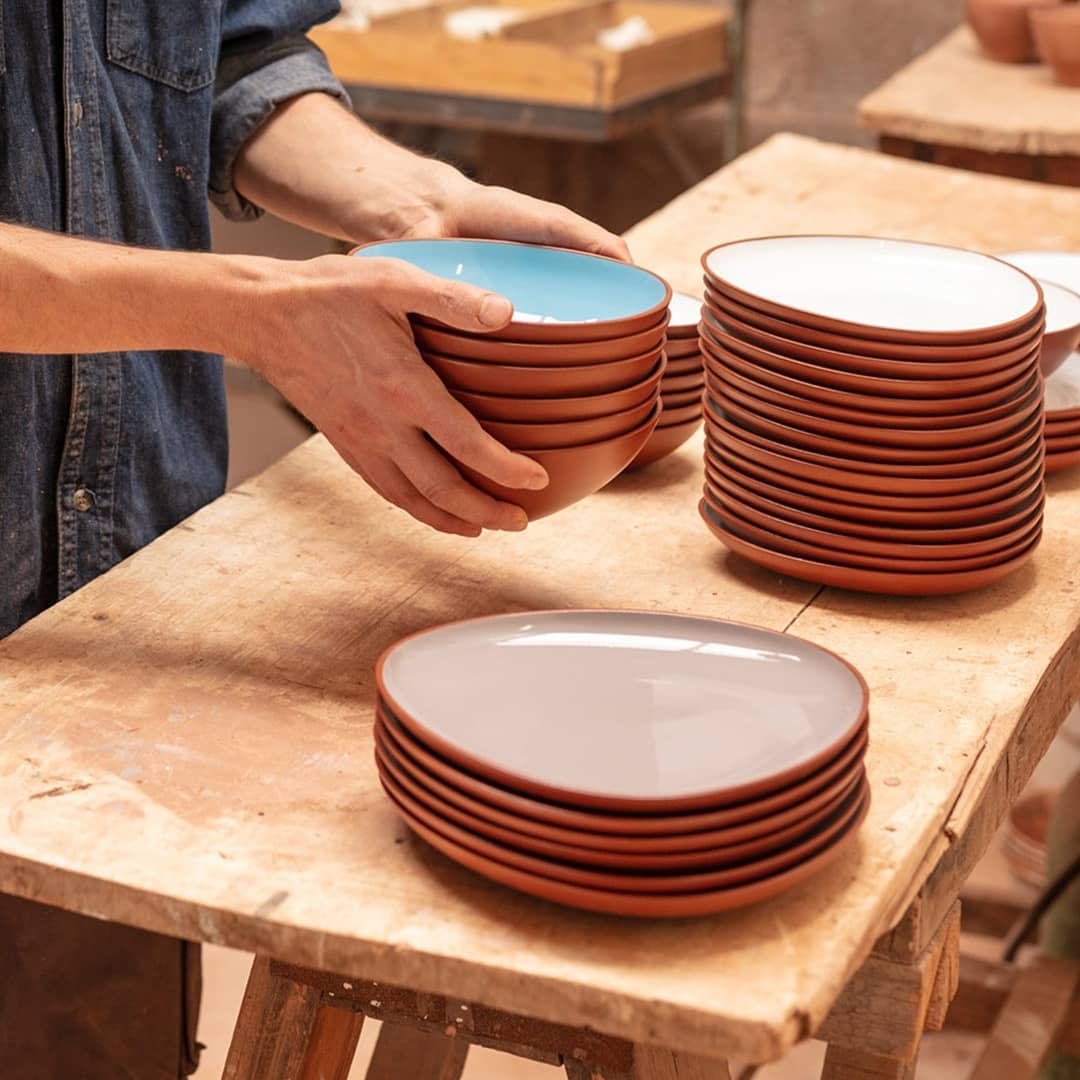 Colette desarrolló piezas producidas con gres rojo, materia prima extraída de la montaña de Mendoza, una arcilla natural con minerales e identidad andina que se moldean para crear cada pieza artesanal de la marca.