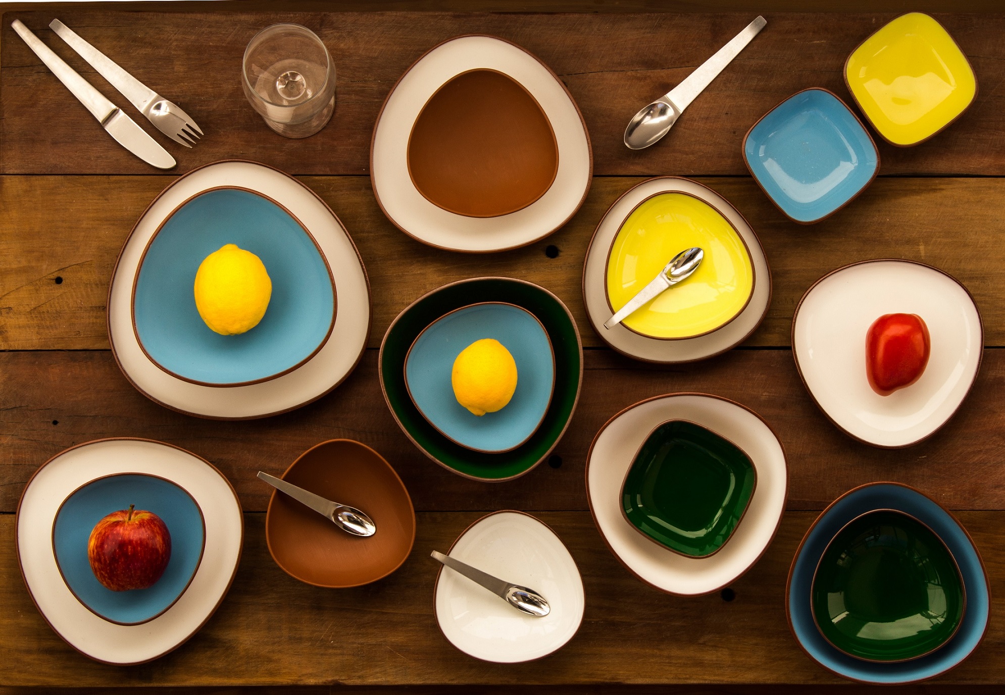 El diseño ícono de esta vajilla es su esmaltado, por vaciado, con colores blanco, gris, turquesa, verde y amarillo. De esta manera garantizan la continuidad de piezas y de colores. Al tener esmalte vítreo en la cara interna de las piezas, la cerámica no absorbe aceites ni líquidos, tampoco se raya con el uso de los cubiertos.