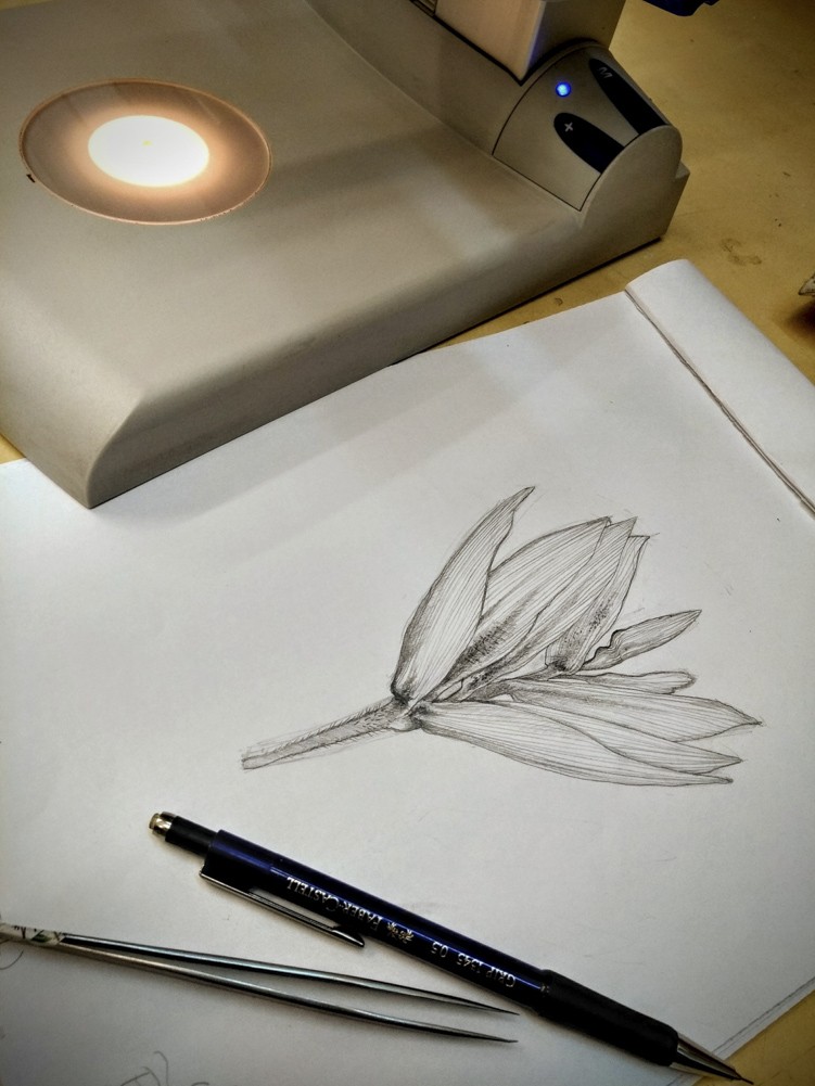 La joven artista encuentra la diversidad del arte como un espacio lúdico en el que va y viene sin juicios «no me caso con una técnica o forma, me entretengo con lo que se presenta. La mayoría de mis trabajos son grabados, pero me gusta mucho dibujar, sobre todo me atrapa la ilustración botánica científica en la que me estoy especializando».