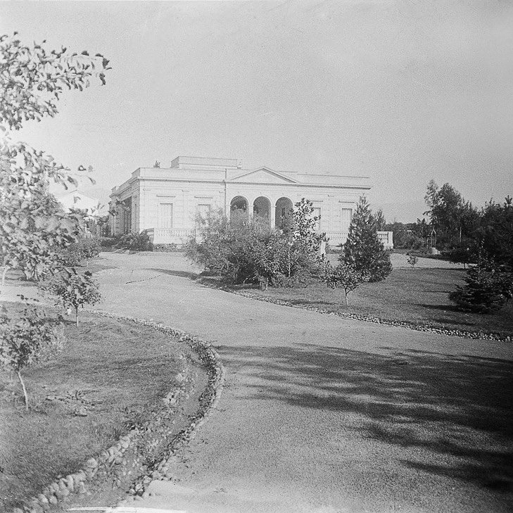 La fachada oeste de la residencia era diferente a lo que se puede ver hoy. Tenía un altillo con vistas a la cordillera y dos alas de servicio que fueron demolidas. En este sector estaba el antiguo patio de labor donde se destaca aún hoy la palmera egipcia.