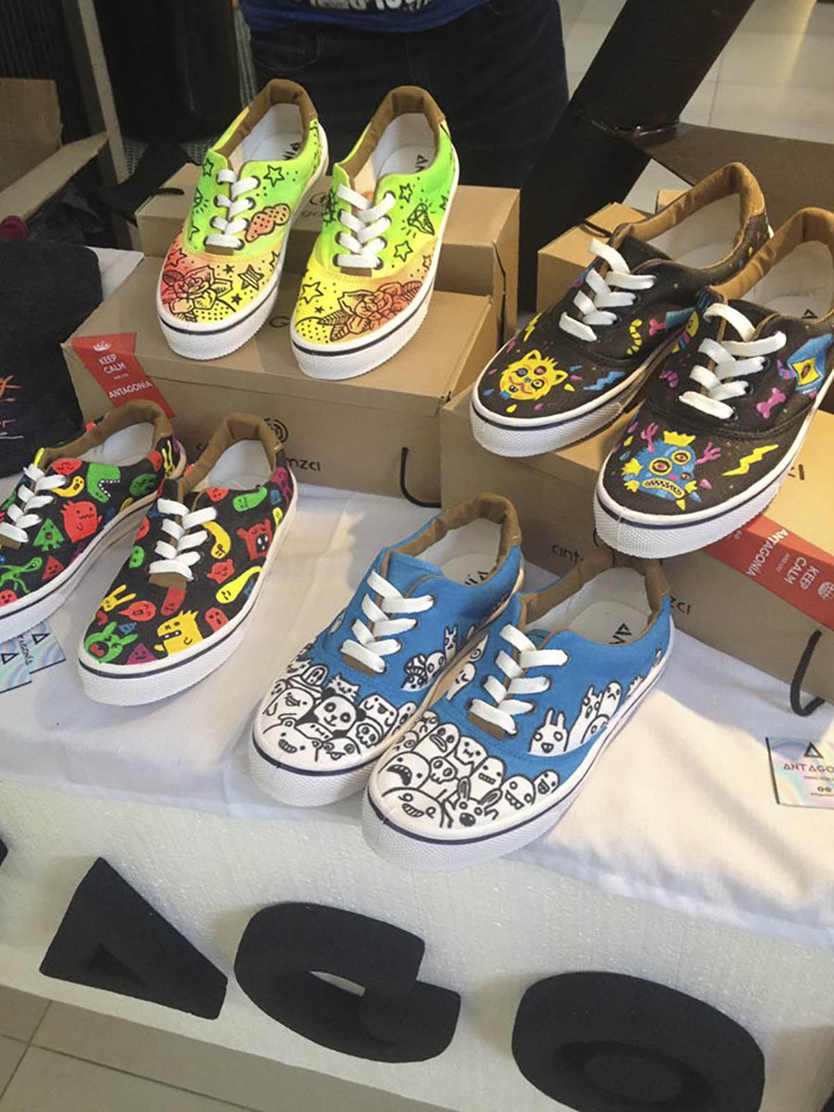 El estilo de Antagonía es psicodélico juvenil, «zapas bien locas y coloridas» aunque el gusto de la clientela también va guiando al diseño. «La gente es muy tradicional a la hora de elegir un calzado… les encanta la propuesta de colores fluo, por ejemplo, pero no se animan a usarlas», comentan.