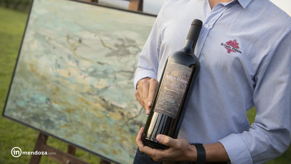 El nuevo vino lleva por nombre Quimera Zonda, en alusión a la pintura del artista mendocino Marcelo Von der Heyde, Zonda, obra que se eligió para estar en la etiqueta de las 3600 botellas del nuevo blend de Achaval. «El cuadro lo hice en 2015; empecé a esparcir pintura y a medida que la trabajaba aparecía un viento, un huracán… al terminar la obra me di cuenta que representaba al zonda, al fenómeno clásico de Mendoza. Y ahora es un honor que mi obra de arte esté en lo que Achaval Ferrer considere su obra de arte», comenta el artista.