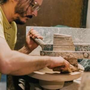 Pero Agustín comenzó a trabajar con la cerámica de manera más consciente durante la secundaria, donde tuvo la posibilidad de realizar un taller. «Ya cursando el último año del secundario las profes que dictaban el taller me recomendaron que siguiera estudiando en la Facultad de Artes y Diseño de la Universidad Nacional de Cuyo en las Carreras de Cerámica, en la cual me recibí con el título intermedio de Ceramista. Al cabo de un tiempo salió un llamado a concurso para la catedra de alfarería, que es la técnica cerámica en la que me especializo, y quedé seleccionado por lo cual hoy en día soy docente adjunto de la catedra de modelado y color cerámico II y encargado del taller de producción».