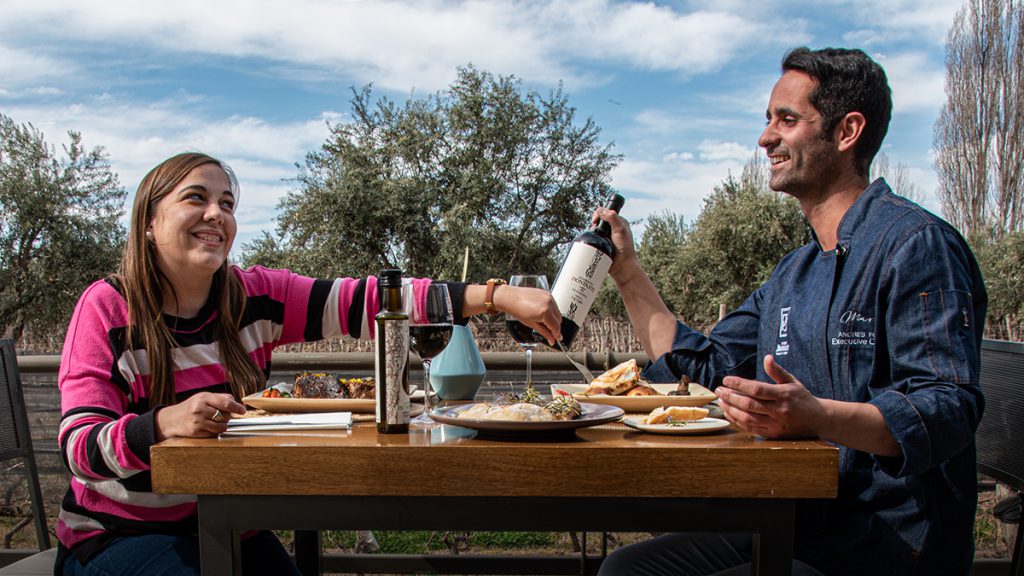 Los asesores gastronómicos y la sommelier de la bodega proponen acompañar los platos con sus distintas etiquetas. Para el menú de cinco pasos recomiendan el siguiente orden: espumoso, Malbec joven, Malbec 50 y 50 (2019), Chardonnay reserva o Malbec Lote 1915 según el principal elegido, y por último, un Chardonnay dulce natural.