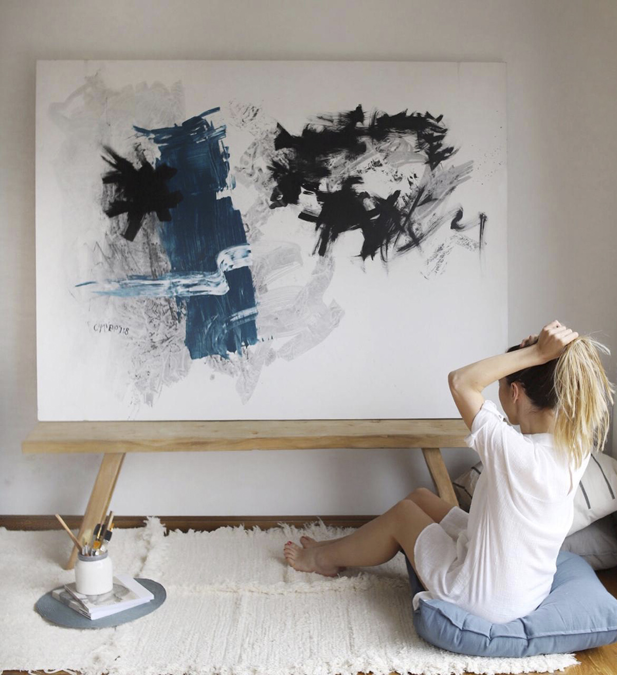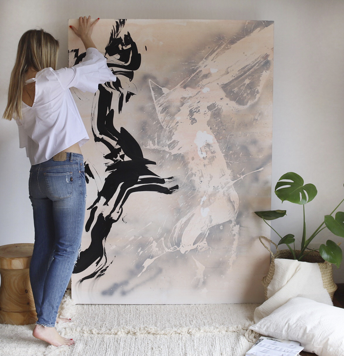 La verdad no. Jamás hago una obra pensando en un espacio, estoy más bien metida en mi proceso, de todos modos creo que mis obras son muy amigables con los espacios contemporáneos. En estos tiempos de Instagram muchas bloggers e influencers de decoración han elegido mis obras, me encanta la bajada que hacen, y ayudan a vincularse con el arte de otra forma, y a animarse a vivir con obras. Aplaudo este proceso, pero dicho en las horas de taller los espacios no me condicionan.