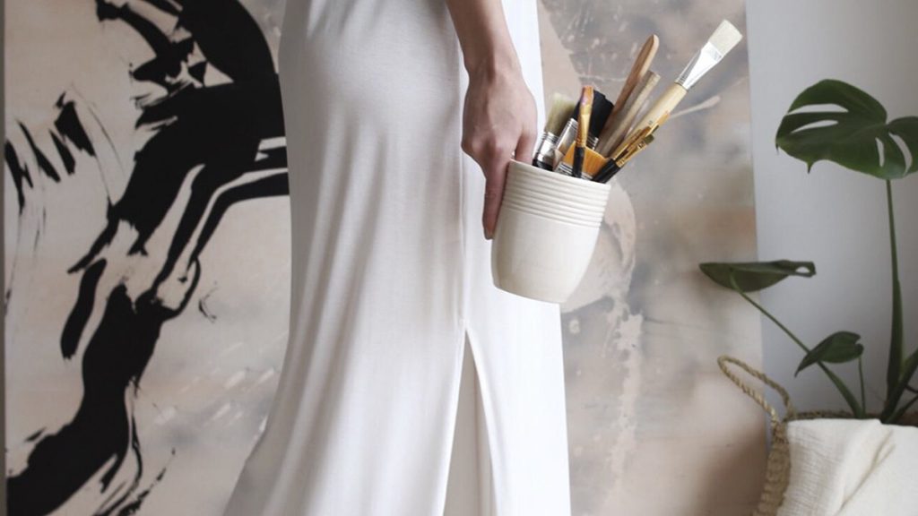 También hago cerámica. Aprendí en Mendoza y después estudié en Nueva York con Yasumitsu Morito, me encanta, me permite conectarme con la pieza sin la ansiedad de la pintura, tengo una línea pequeña de vajilla, y doy algunos talleres y workshops.