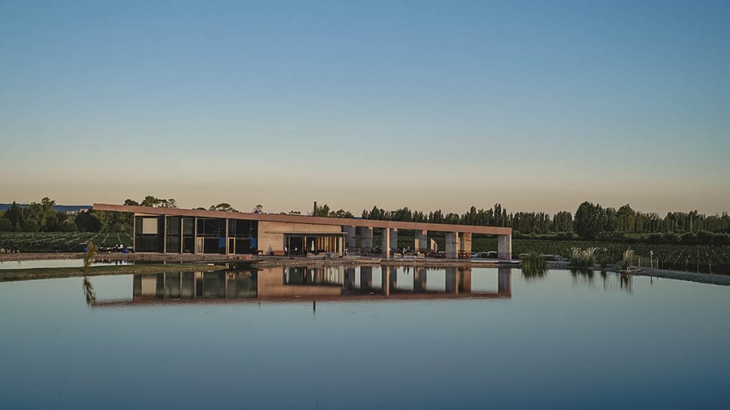 La bodega, un prisma rectangular de 11 metros de ancho por 100 de largo, diseñada por los arquitectos mendocinos Gabriel Japaz y Pablo Guerra, emerge de la tierra, simulando un plegamiento tectónico del cual aflora el edificio con capacidad de hasta 300.000 litros, lo que la posiciona como una bodega pequeña en Argentina. Está equipada con tecnología de clase mundial y un método de fermentación y crianza absolutamente innovador que incluye enormes y novedosos «mates» de concreto o ánforas de 9.600 litros con un mecanismo basculante, el cual permite mantener en forma selectiva el contacto de los sólidos con los líquidos, minimizando el uso de bombas en remontajes y trasiegos.