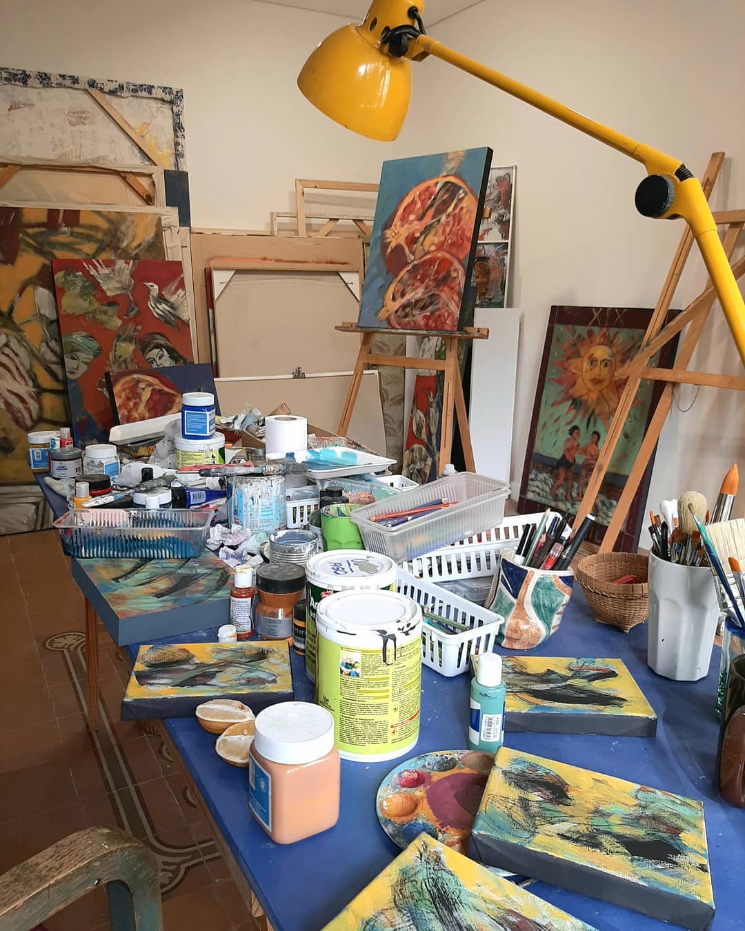 Artista plástica desde su niñez en Buenos Aires, trabajadora incansable y amante de la naturaleza, pasó el encierro mendocino creando, pintando y pensando en un oasis de arte abierto, donde sus cuadros con combinaciones de colores que son su sello se pudieran contemplar, y donde la gente hiciera tertulias, se relajara y respirara arte.