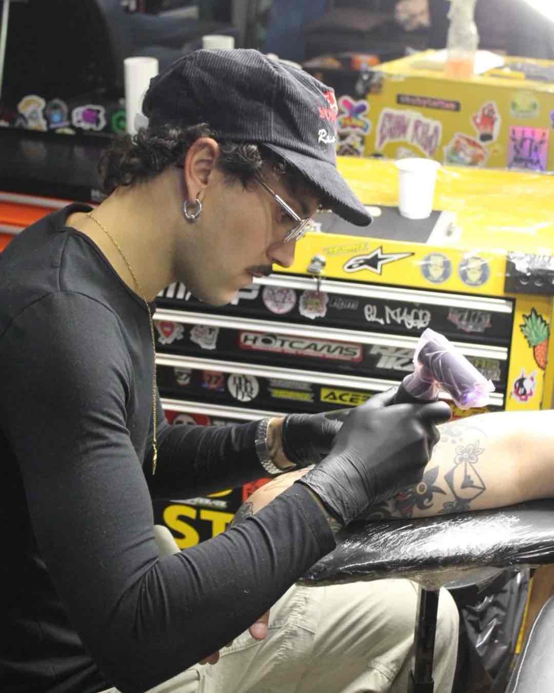 El camino artístico de Juan Bonaceto comenzó en los muros. Desde los once años pinta grafitis (bajo su firma Mity) y fue esa puerta la que lo llevó a cruzarse con muralistas, tatuadores y artistas de distintos lenguajes. “Fueron varios años de pintar en la calle y más tarde llegó el tatuaje. Ahí entré a otro mundo, con otras reglas y técnicas”, recuerda. Ese recorrido, del aerosol y el látex a la tinta, el papel y la piel, fue moldeando un estilo que hoy transita entre lo simbólico, lo figurativo y lo abstracto.