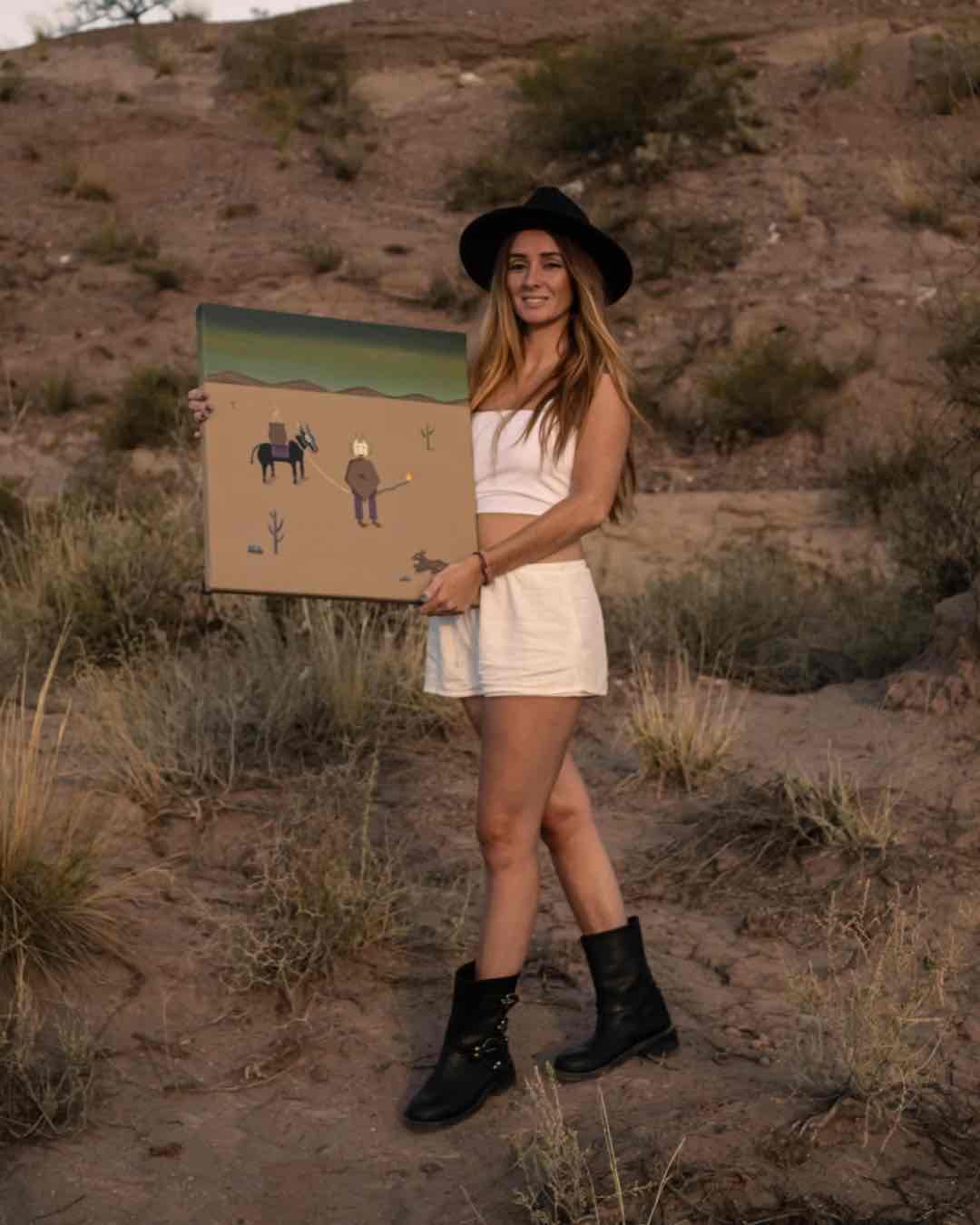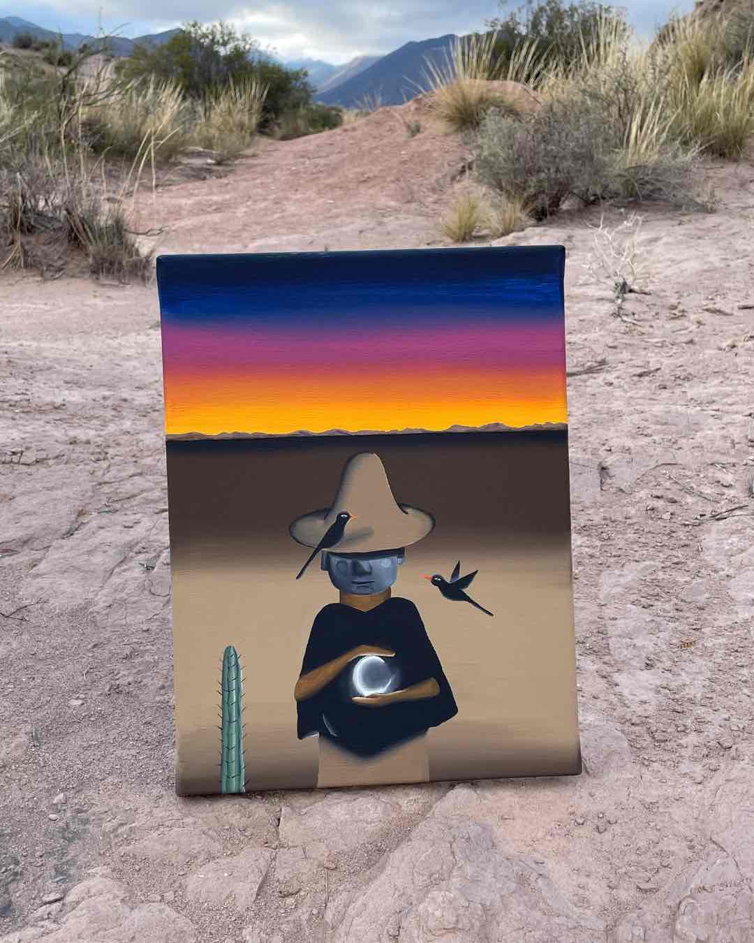 A sus 28 años, entre viajes y nuevos paisajes, continúa explorando la transición “del desierto a la montaña”, incorporando lentamente la figura humana y nuevas técnicas como el collage textil. “Pinto y siento que algo está cambiando en mí, desde adentro”, confiesa. Su obra es, justamente, ese proceso: una búsqueda de equilibrio entre la memoria del territorio y la transformación personal.