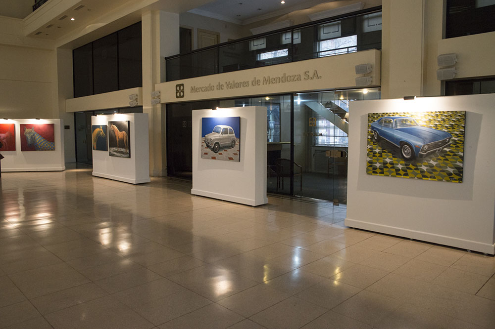 Recorrimos la muestra que el plástico y cineasta mendocino acaba de inaugurar en la Bolsa de Comercio de Mendoza.