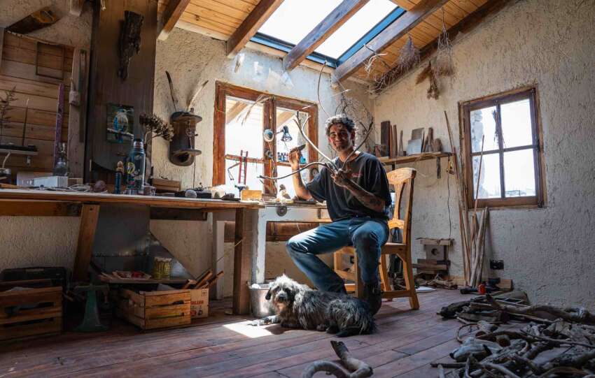 El artesano nos recibe en su casa-taller de La Crucesita, donde la montaña, el hierro y los hallazgos cotidianos en la naturaleza alimentan un oficio que fluye entre intuición y calma.