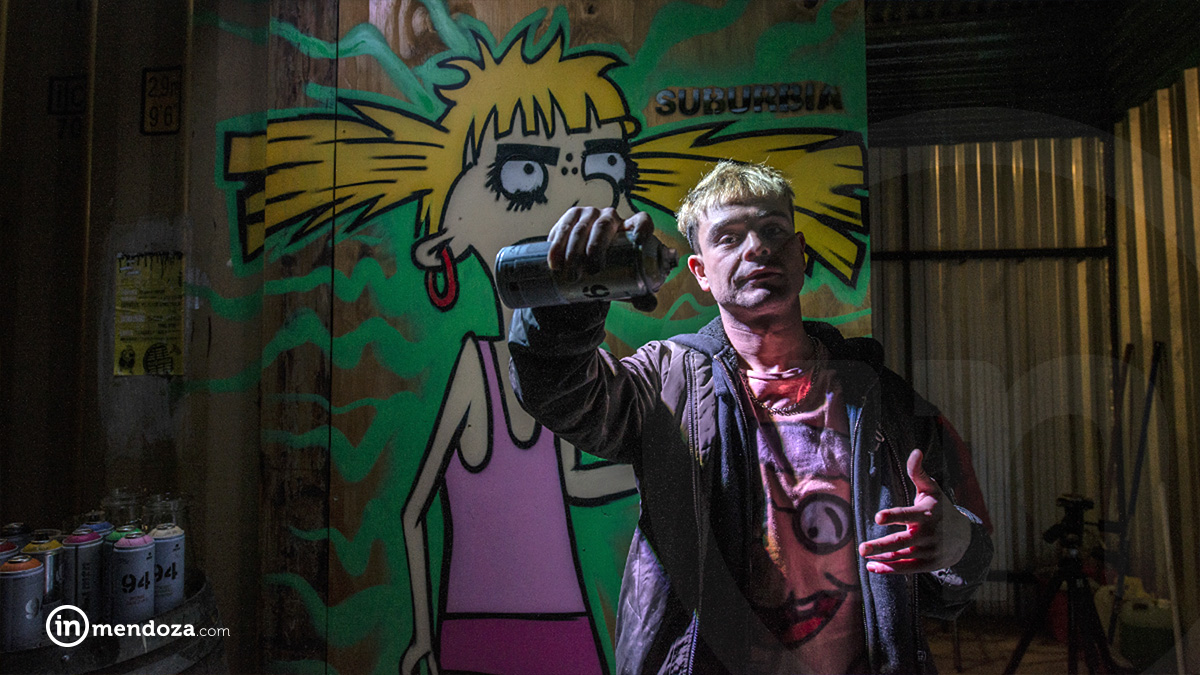 El artista grafitea los dibujos animados en paredes, kioscos y florerías de Mendoza.