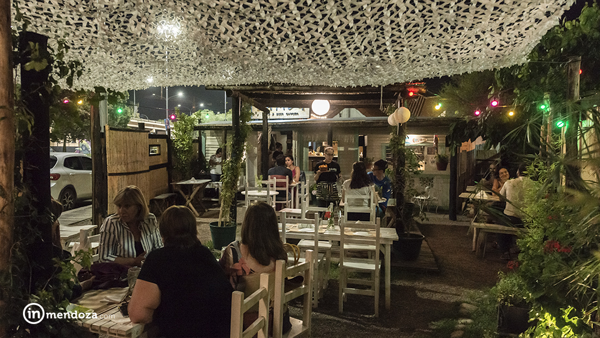 Las cañas, las mesas elaboradas con troncos, las plantas y flores, la fuente de agua, las guirnaldas con foquitos de colores hacen la ambientación perfecta. Y la música seleccionada para cada noche, las cervezas bien frías, los licuados tropicales y la variada cocina completan la propuesta.