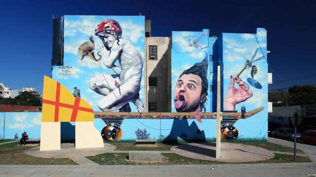 Martín Ron, el artista que pinta murales gigantes visitó Mendoza. Considerado entre los diez muralistas más destacados del mundo ha realizado más de 300 obras en Argentina, Asia, EEUU y Europa. Si se alinean los planetas y encuentra un espacio, podría encarar un mural en nuestra ciudad.