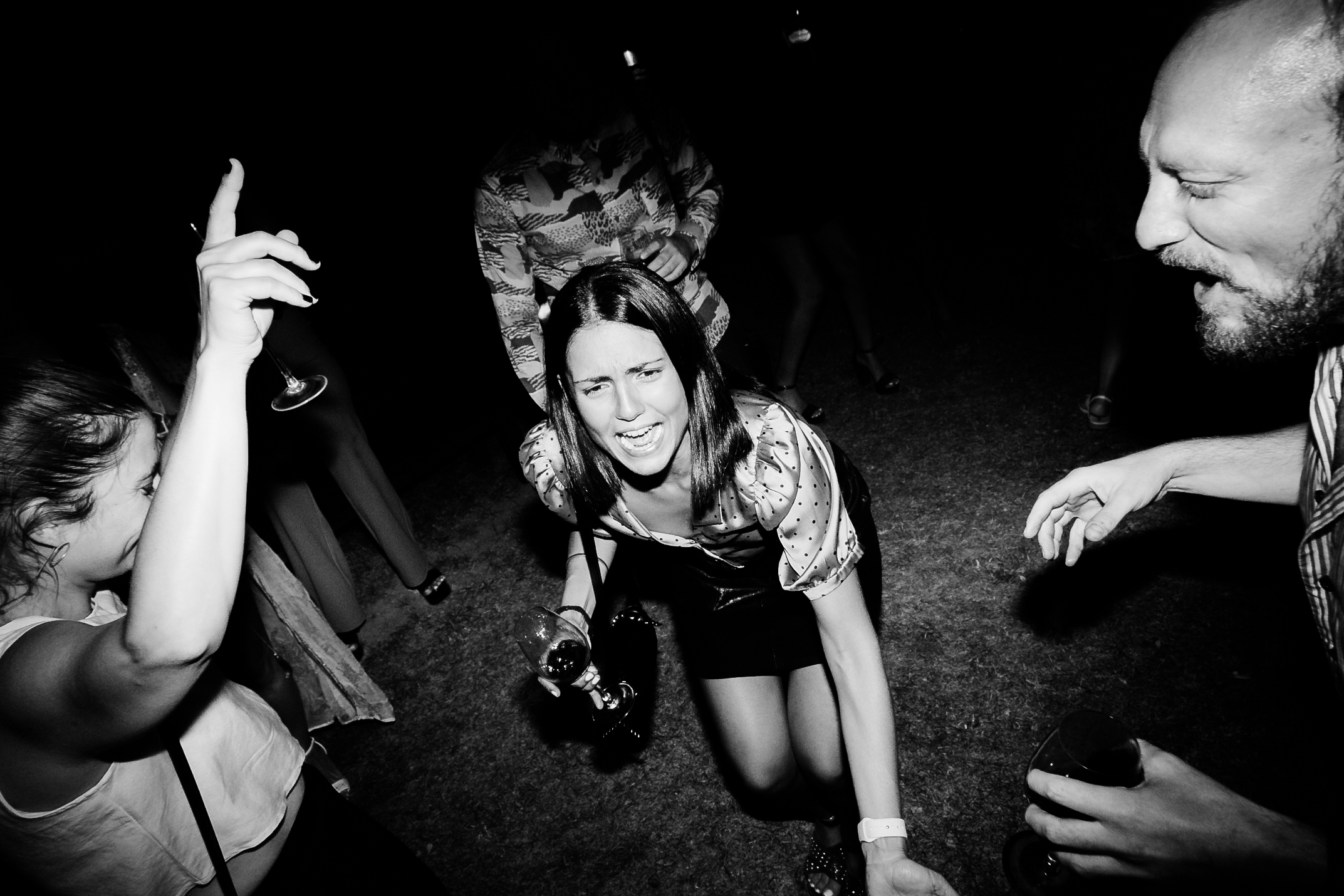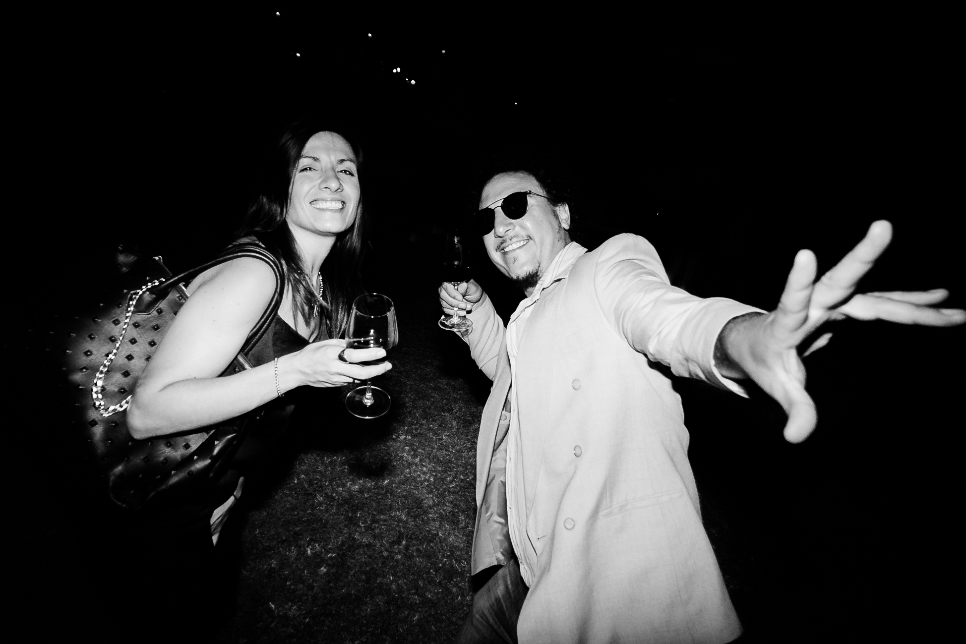 Soldados romanos con antorchas de fuego, un acróbata en zancos, una dama antigua romana y dos bailarines vestidos de blanco hicieron del cóctel una fiel representación de lo que sucedía en los carnavales europeos.