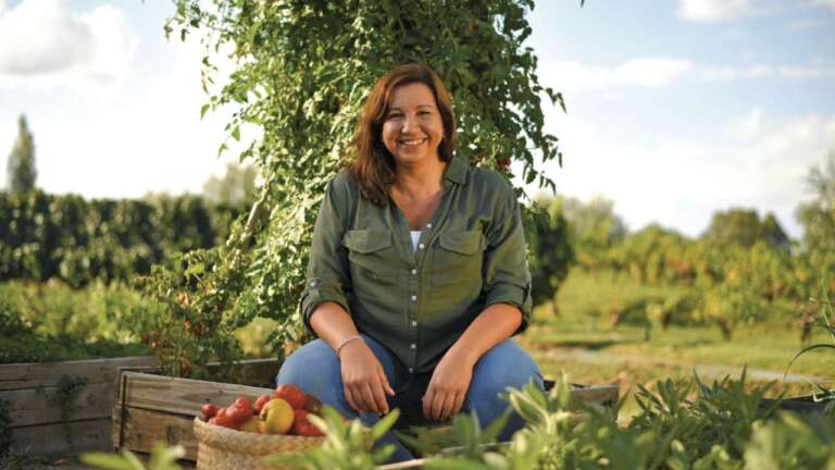 La ganadora de una estrella verde Michelin es doctora en Biología, docente universitaria, investigadora, productora y madre de dos. Pero su descripción no estaría completa si no mencionamos su pasión por el tomate, la finca y el nombre de su compañero de vida, Alejandro Vigil.
