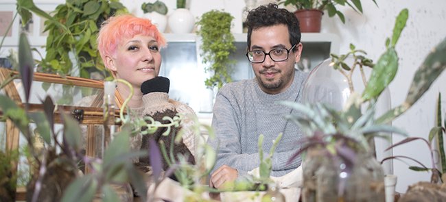 Una selva de plantas especiales asoma en la Sexta Sección. Son los vegetales que le dan vida al arte de Bruno Cazzola y Claudia Camplone. Ambos integran el colectivo artístico “Vanitas”: un “ex vivero” con “plantas de autor”.