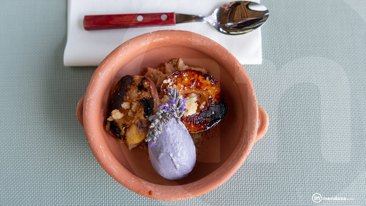 A la hora del postre, Molina prepara queso brie con batata, membrillo y frutos secos; pionono con dulce de leche y helado de banana; torta húmeda de chocolate y café, y duraznos asados con crumble y helado de lavanda y miel.