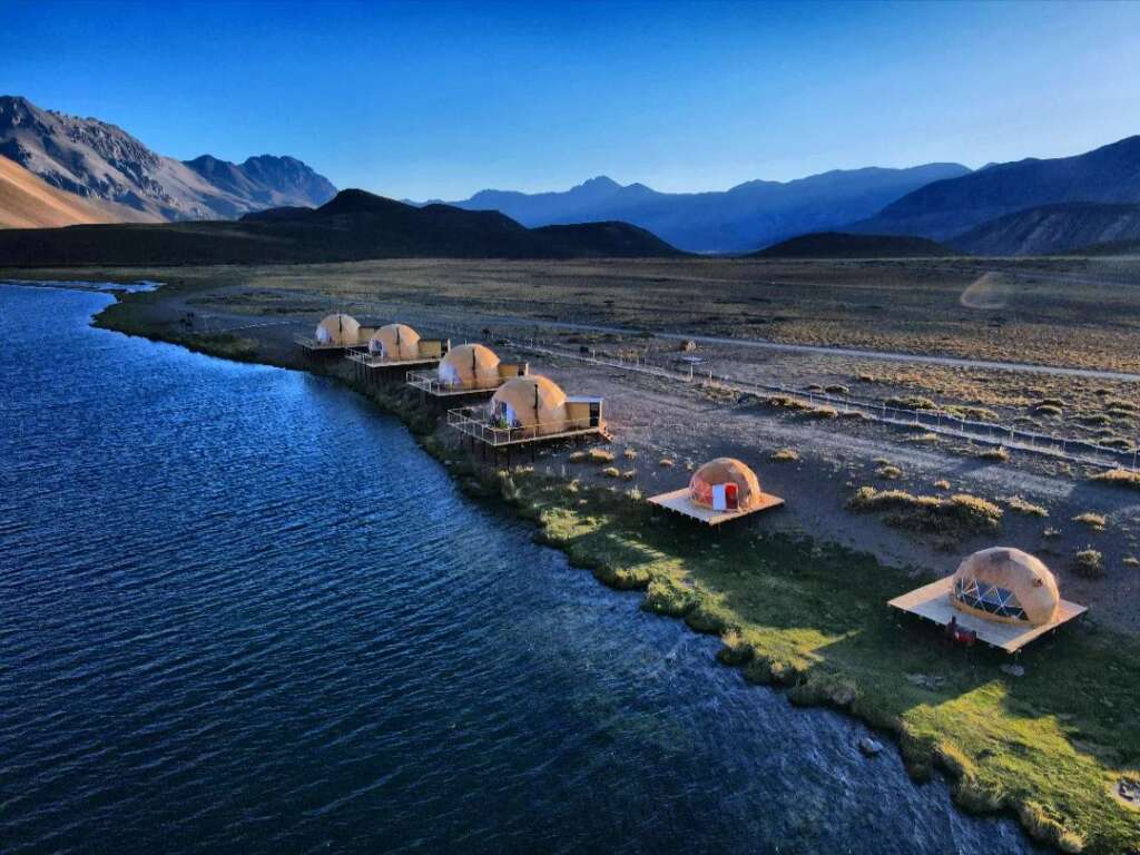 Sus domos, diseñados para dos, cuatro u ocho personas, cuentan con calefacción a leña, pisos flotantes, vistas panorámicas a la majestuosa cordillera y desayuno incluido.