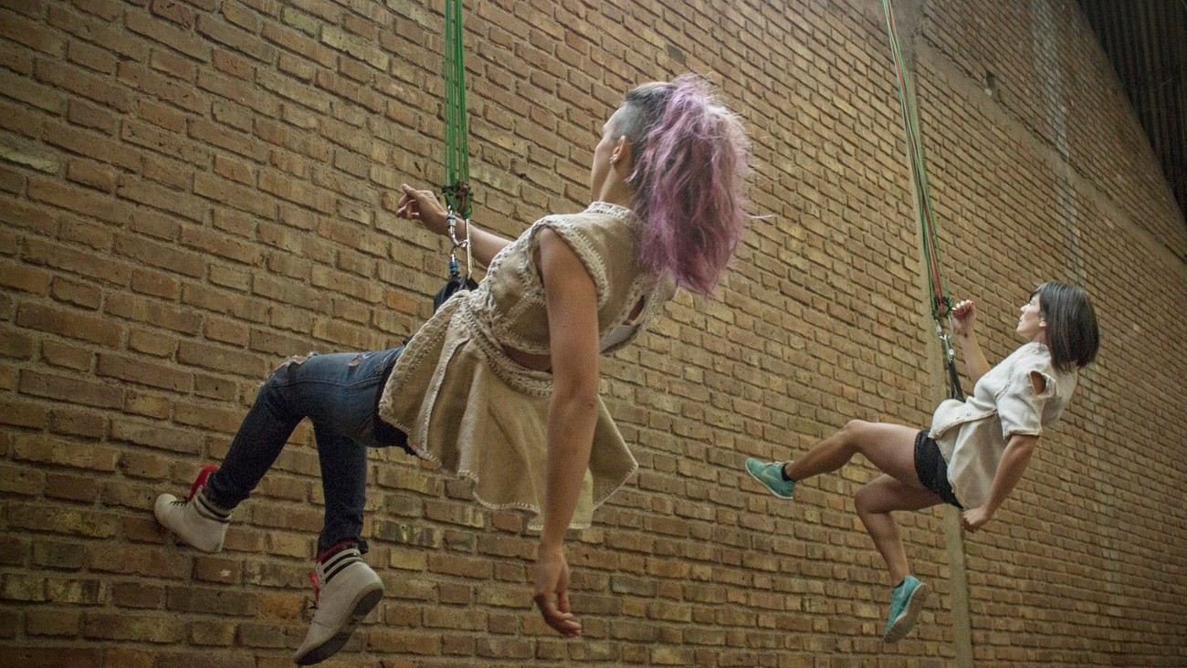 Gestadas en la Compañía Volarte, de Ángel Urano y Daniela Sat, y bajo la dirección de ésta última junto a Romina Fisela, nació Cuerdas, una obra que fusiona el teatro –la protagonista se desempeña en el piso todo el tiempo– mientras que el resto del elenco, con ambas directoras incluidas, corren por las paredes, descienden desde el cielo y flotan por todo el espacio.