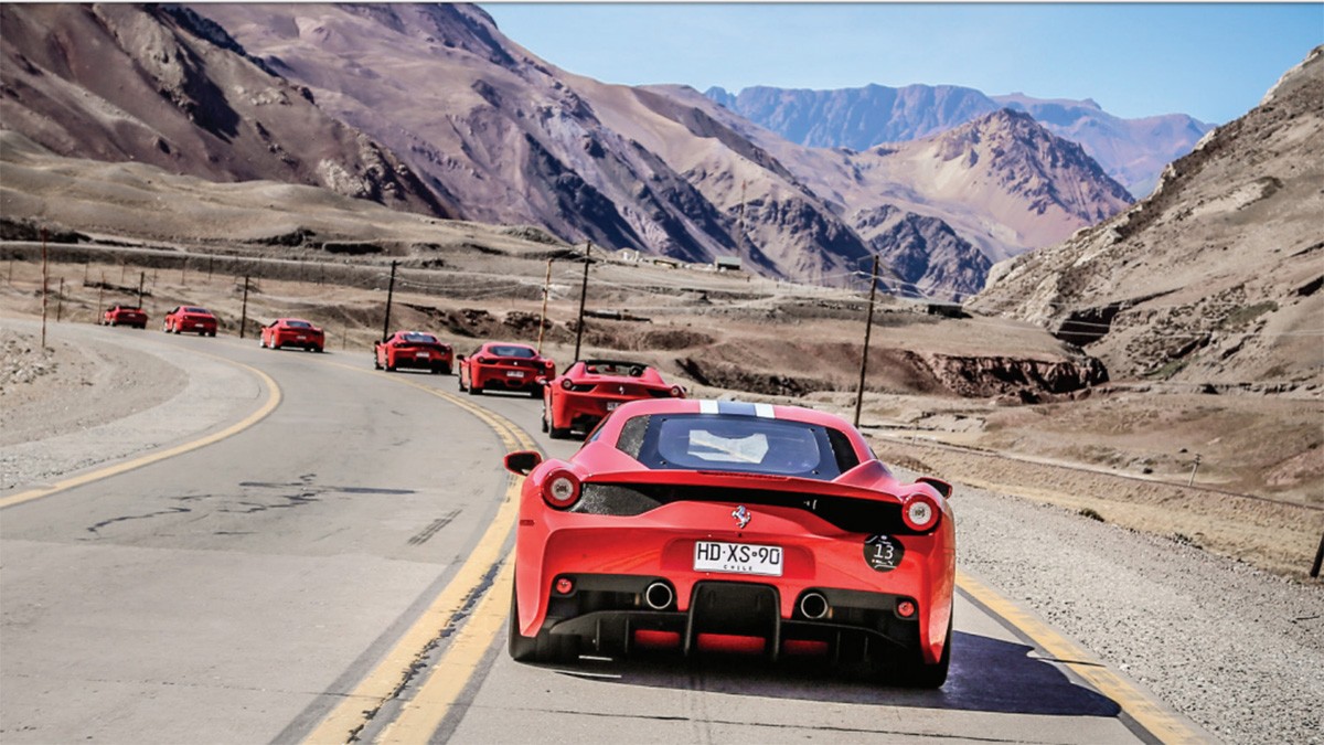 Nueve días de una road movie de lujo. Diversas geografías, paradas gourmet, hoteles cinco estrellas y la pasión de poner a prueba maquinas italianas de colección. Ferrari clásicas y otras último modelo partieron desde Santiago de Chile para recorrer más de 4.000 kilómetros de Este a Oeste y finalmente disfrutar cuatro días en Punta del Este. Se trata del Primer Incontro Ferrari Sudamérica, organizado por el Ferrari Club Chile, inspirado en el Cavalcade que se realiza cada año en Europa, donde se reúnen cientos de fanáticos del Cavallino Rampante y realizan una travesía, siempre diferente, por pueblos y rutas europeas.