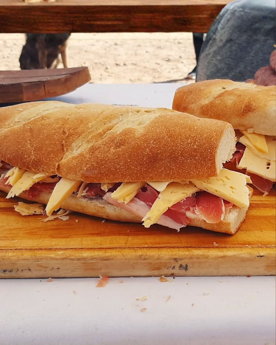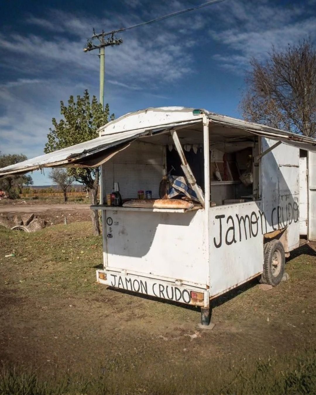 Al hablar de jamón crudo y ruta, también se viene a la mente (rápidamente) dos puestos más pero en zonas distintas así que se pueden probar todas. En la esquina de Cobos y Ruta 7 hay otro carrito, uno blanco, el que recomendó -nada más ni nada menos- que el New York Times. En el mostrador se ve un pan casero gigante, el cual van rebanando cada vez que alguien pide una rodaja para llevar. Las untan con aceite de oliva y ajo y las rellenan con varias fetas de jamón casero que van cortando en el momento. Tienen tamaño individual y uno extra grande para compartir. Edgardo y su familia reciben a todos los que frenan allí con una gran sonrisa.