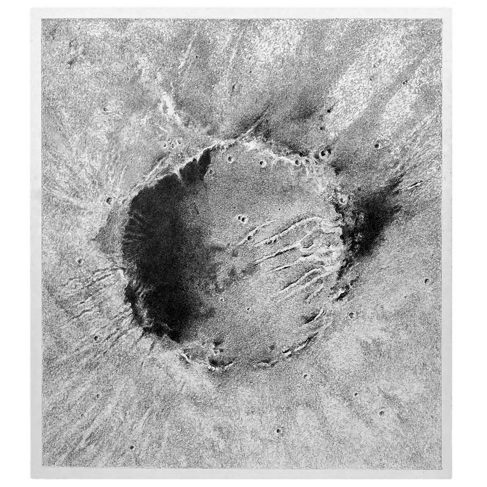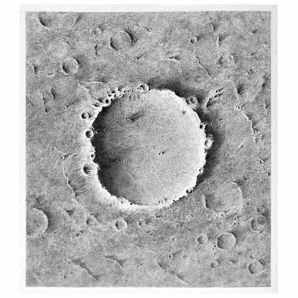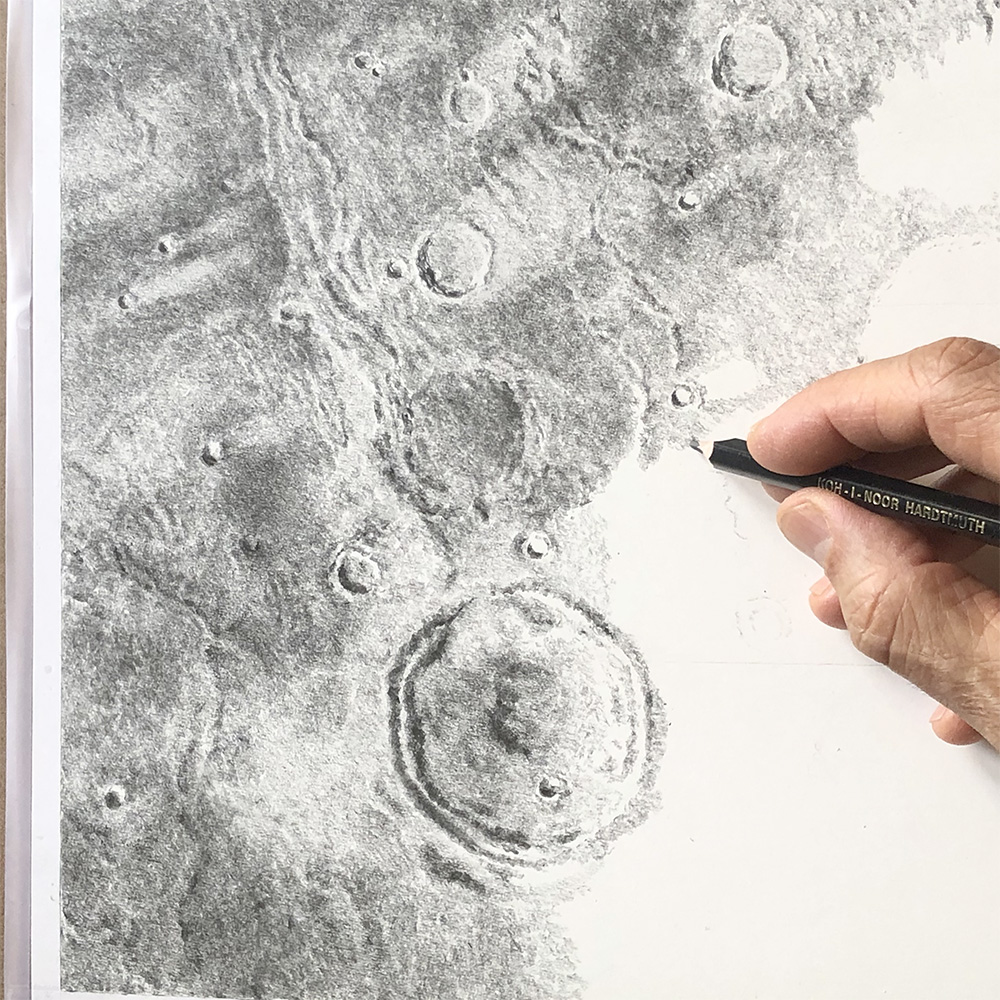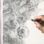 Dibujando a lápiz una de las imágenes de la serie de los cráteres del planeta Marte