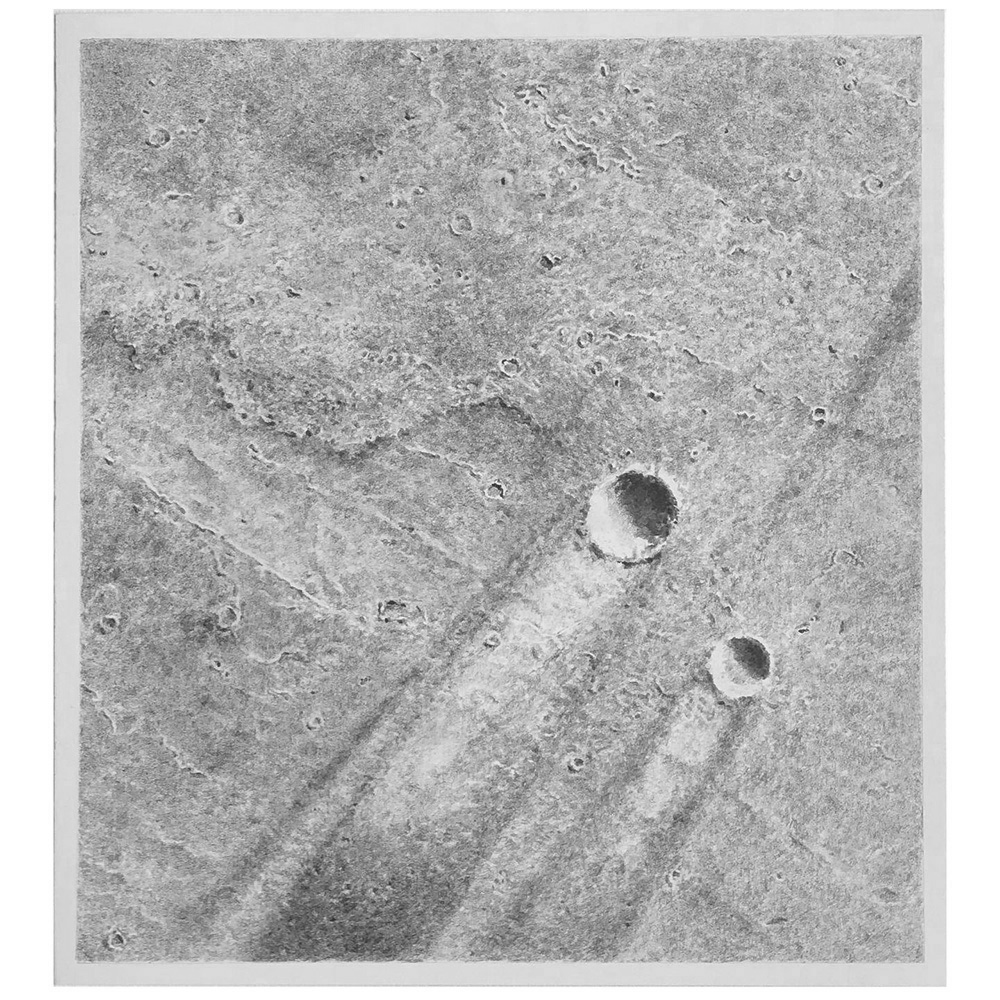 Fue en ese tiempo de aislamiento que el artista quedó «atrapado en Nueva York» sin ver las estrellas y lejos de su prensa de grabado por lo que comenzó una serie de dibujos a lápiz sobre papel con gesso dedicado a distintas vistas de la superficie del planeta Marte, que incluyen imágenes de cráteres antiguos.
