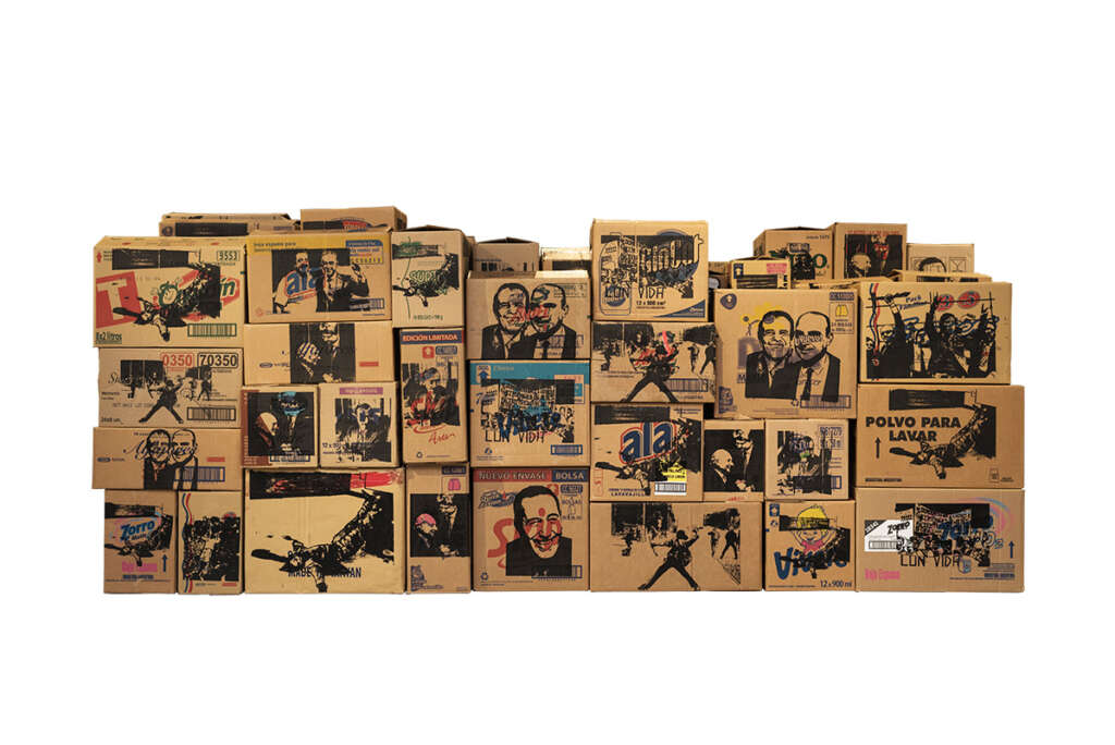 A mi me gusta la innovación por eso en el 2003 emulé lo que hacían los cartoneros y me fui a la calle junto a mi pareja (la fotógrafa Sabrina Kadiajh) a juntar elementos que la sociedad consumista tira. Los cartones y las tapitas fueron los soportes más convenientes y empezamos a jugar. Lo primero que hicimos fue un retrato grandísimo del Che Guevara, durante meses y en el piso.
