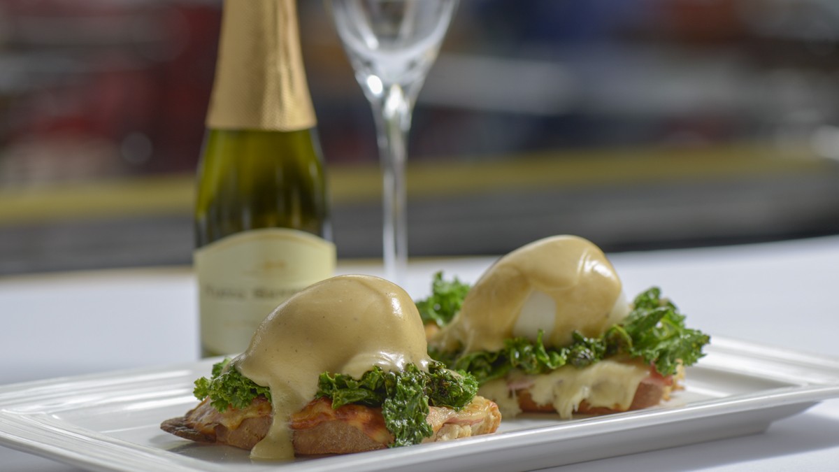 Los huevos benedictinos, un desayuno clásico cuyo origen se remonta a finales del 1800 o comienzos del 1900, según diferentes versiones, toma un nuevo sentido en la cocina de María Antonieta: huevos mollet, jamón, queso, kale y salsa bearnesa.