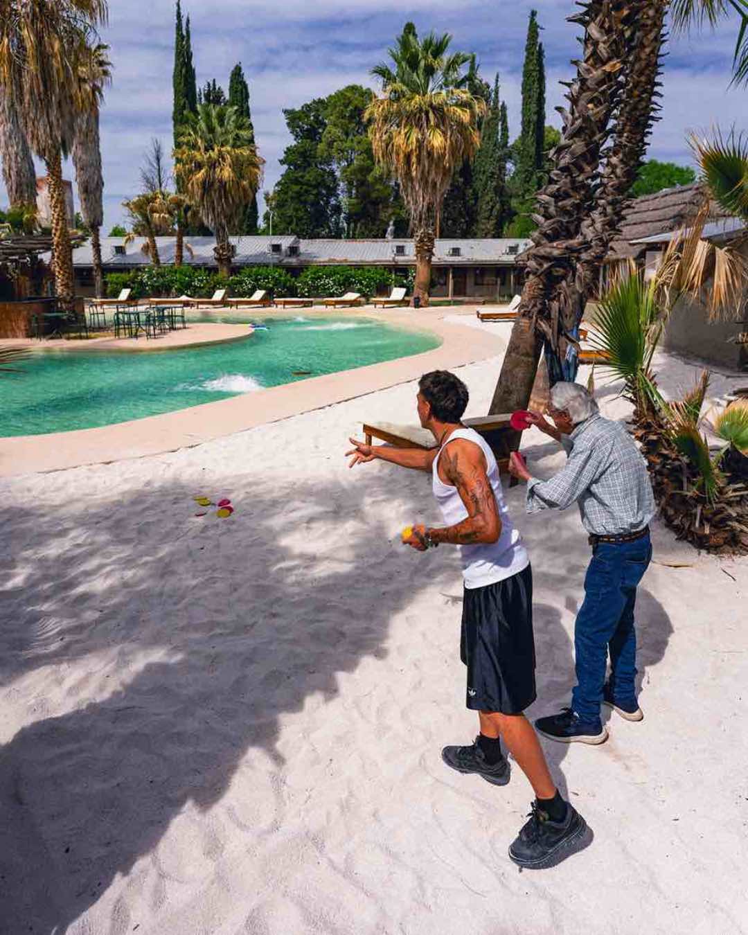 No hace falta subirse a un avión ni cruzar fronteras para sentir el espíritu de unas vacaciones con los pies en la arena. En Puesta del Sol, el sonido del agua y la brisa entre las palmeras hacen olvidar que uno está en plena Mendoza. El complejo se despliega como un “lugar con vida”, un oasis donde todo está pensado para el disfrute, la recreación y los momentos compartidos ya sea en pareja, en familia o con amigos.